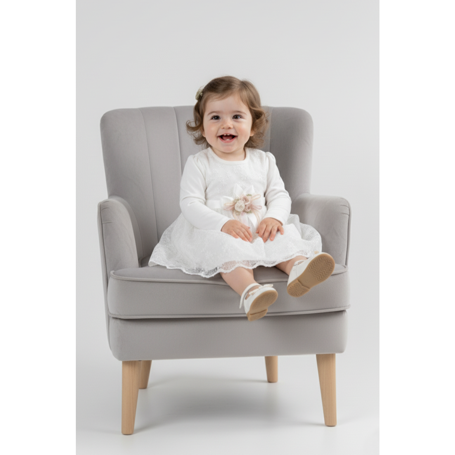 Arka kısmındaki çıtçıtlı kapama sistemi, hem kolay giydirme hem de rahat kullanım imkânı sunar. Günlük konforu özel gün şıklığıyla buluşturan bu model, bebek mevlidi, kırk uçurma, vaftiz töreni, doğum günü, diş buğdayı ve fotoğraf çekimleri için ideal bir tercihtir.