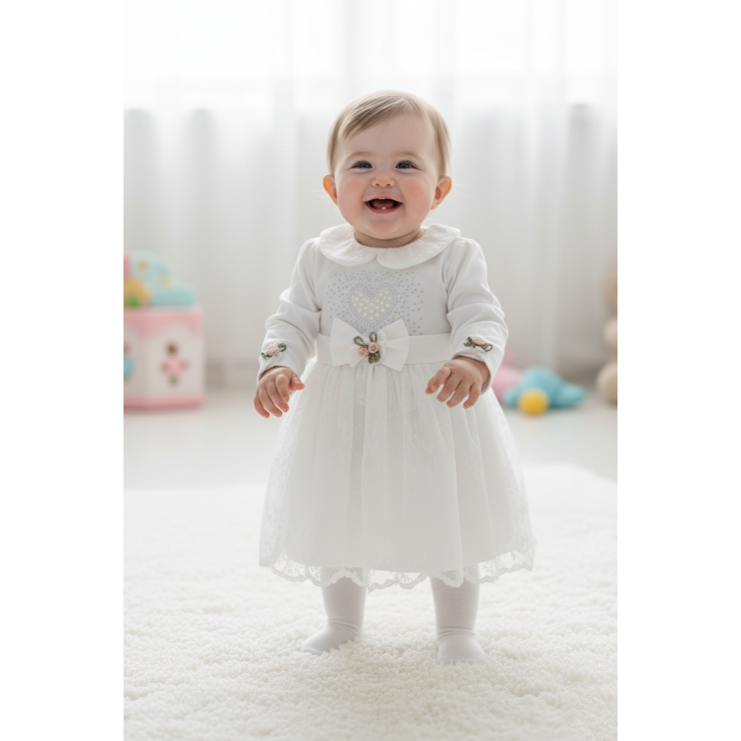 Kız Bebek Dantelli Penye Elbise (Fiyonklu ve İnci Detaylı)