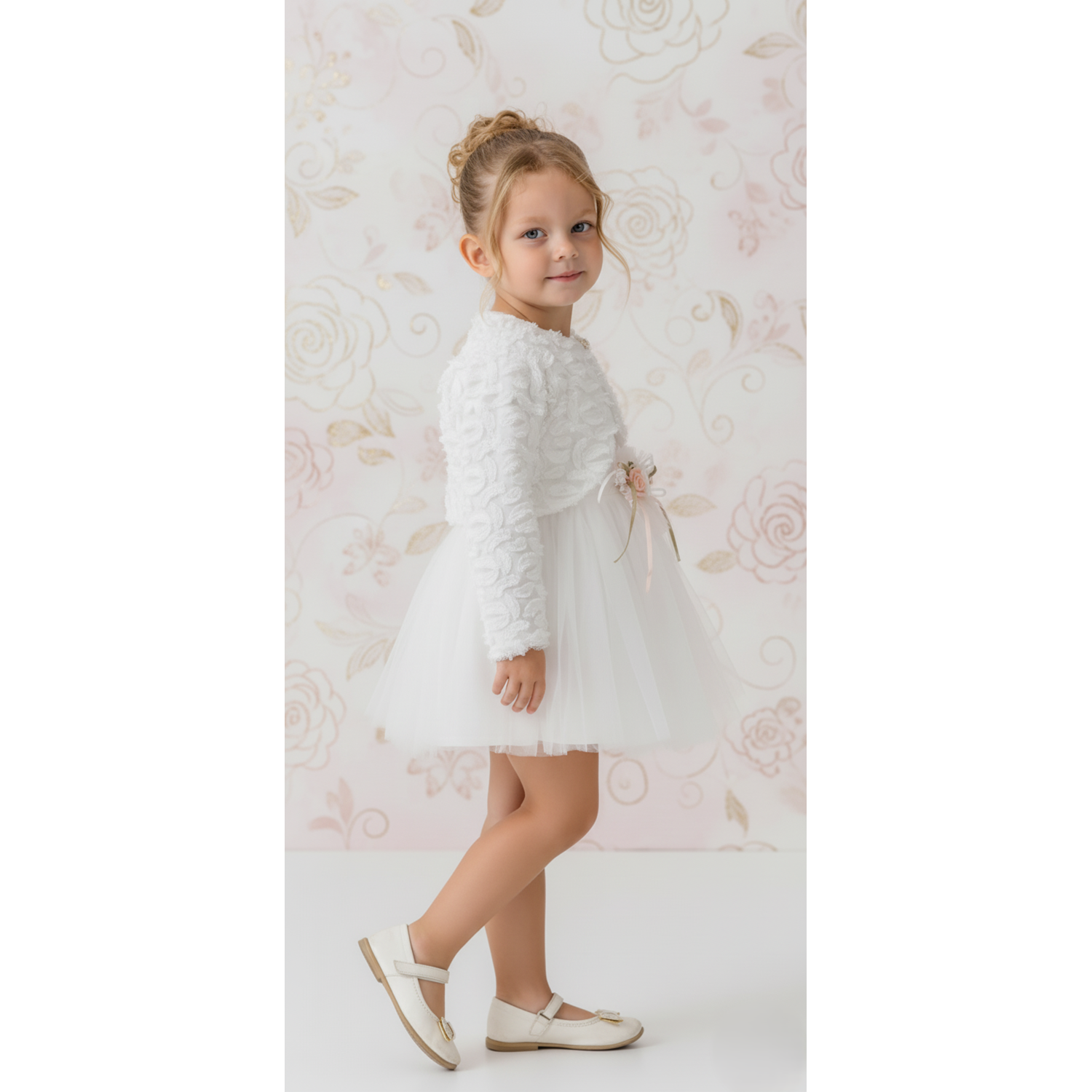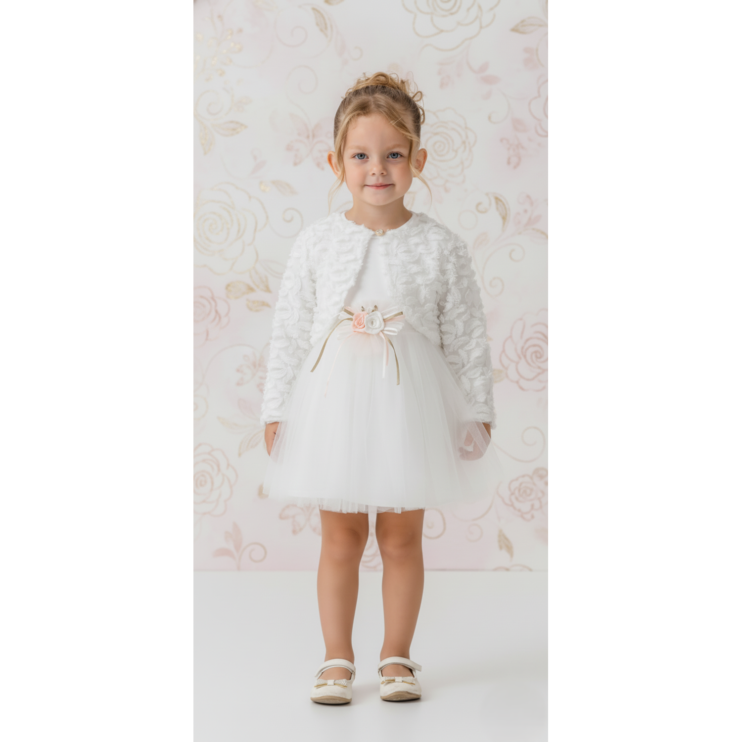 Kız Bebek Bolerolu Çiçek Motif Tütülü Elbise
