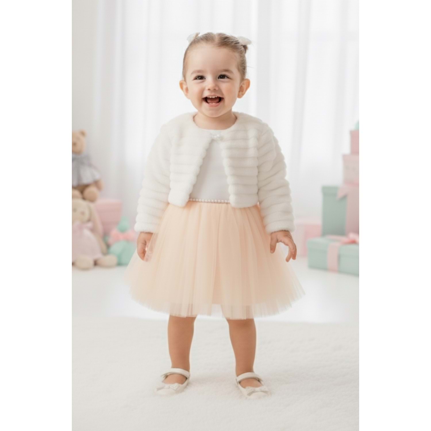 Kız Bebek Kışlık Bolerolu Tütülü Elbise