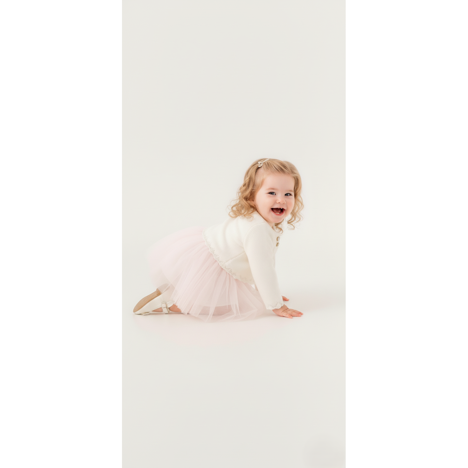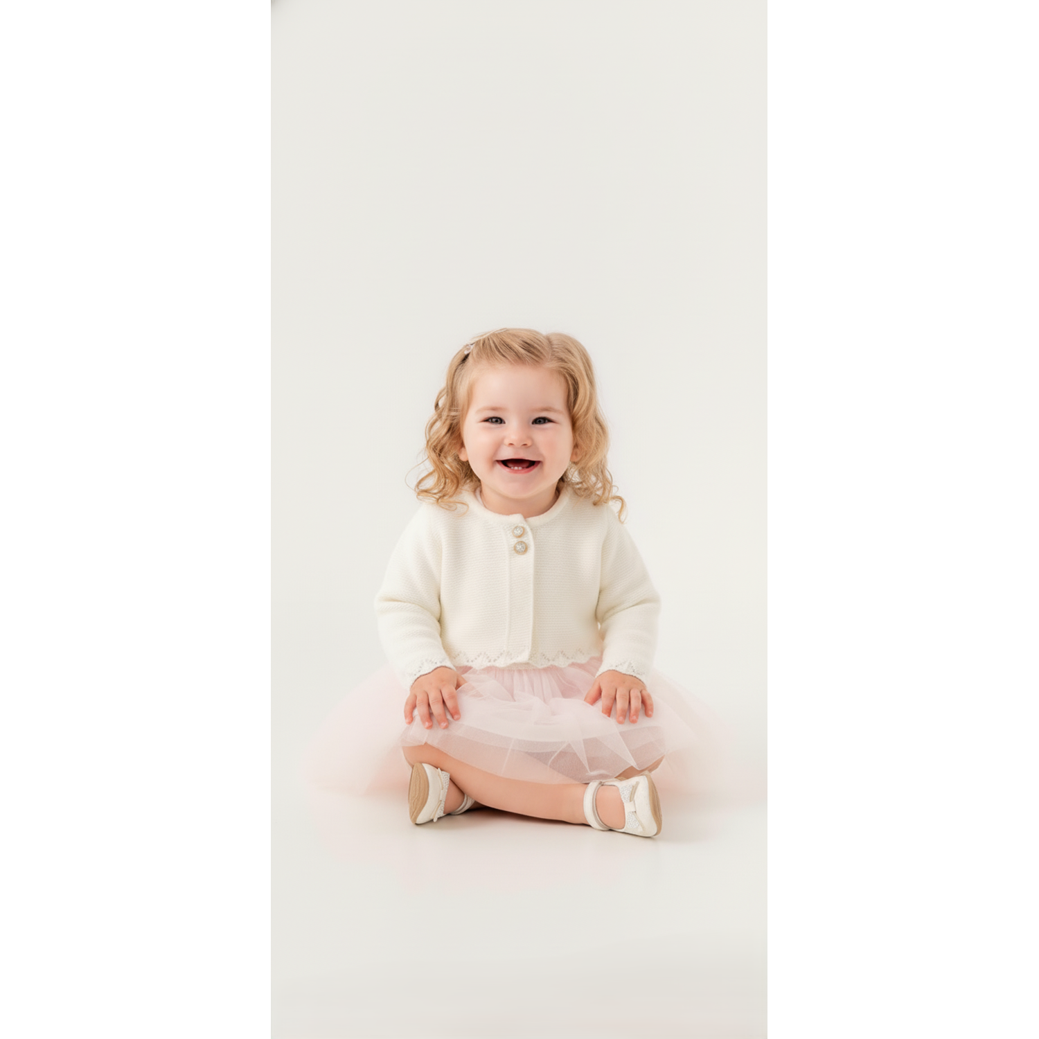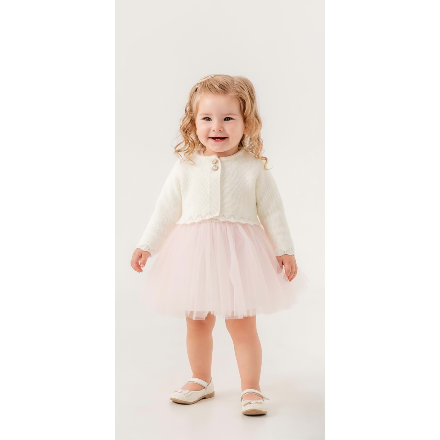 Kız Bebek Simli Triko Bolerolu Tütülü Elbise