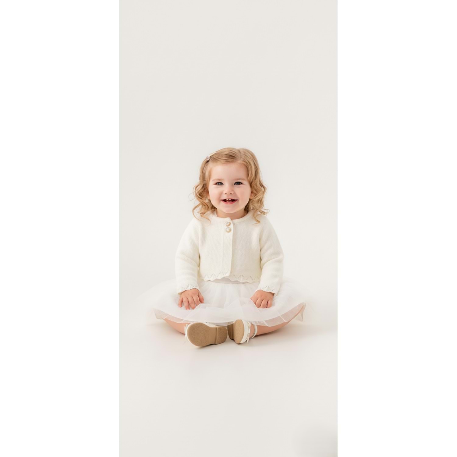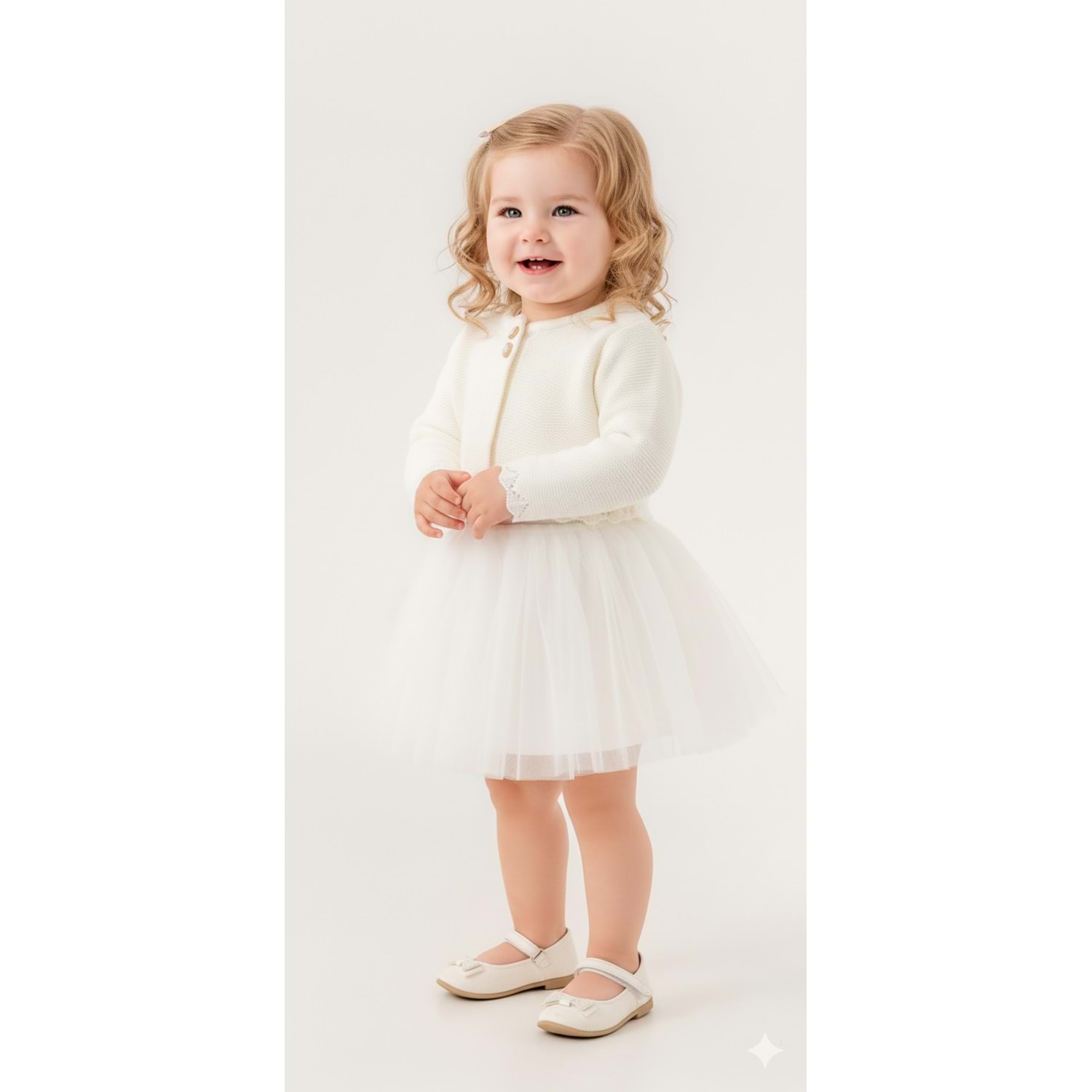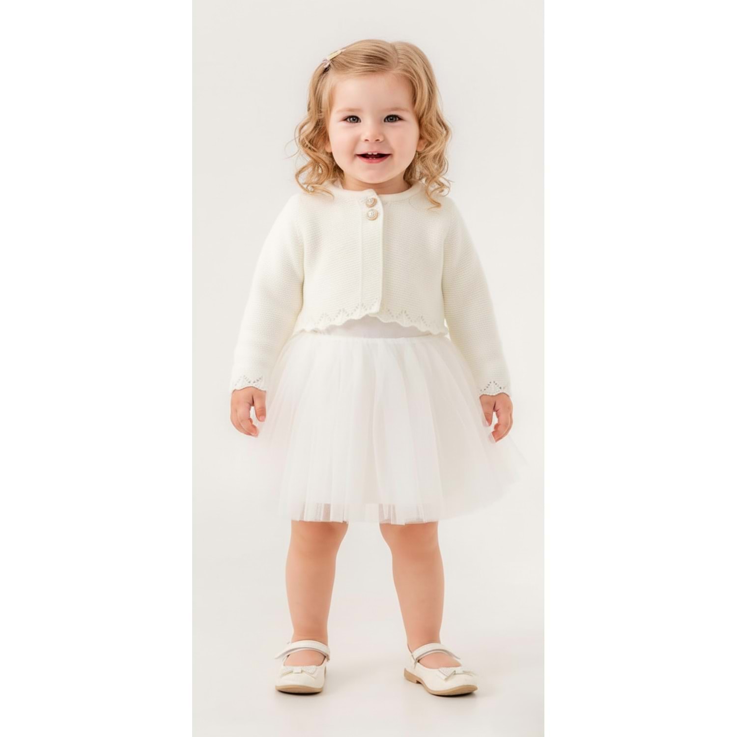 Kız Bebek Simli Triko Bolerolu Tütülü Elbise