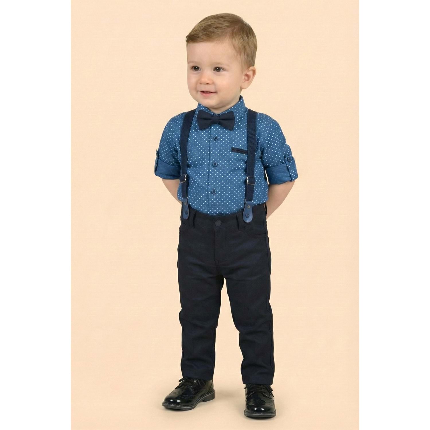 Erkek Çocuk 4'lü Kombin Set - Askılı Gabardin Pantolon ve Papyonlu Takım