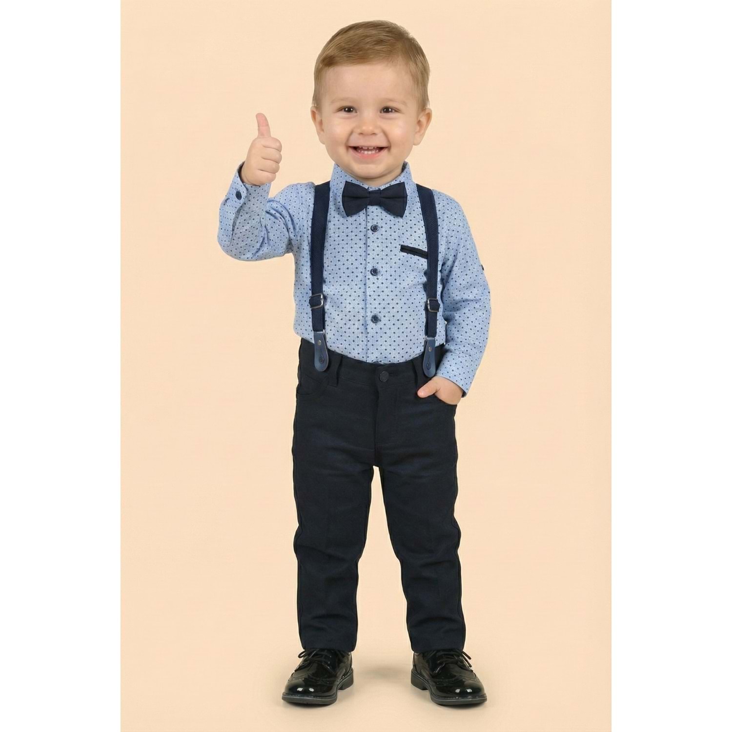 Askı Papyonlu Erkek Bebek Gömlekli Takım M00785