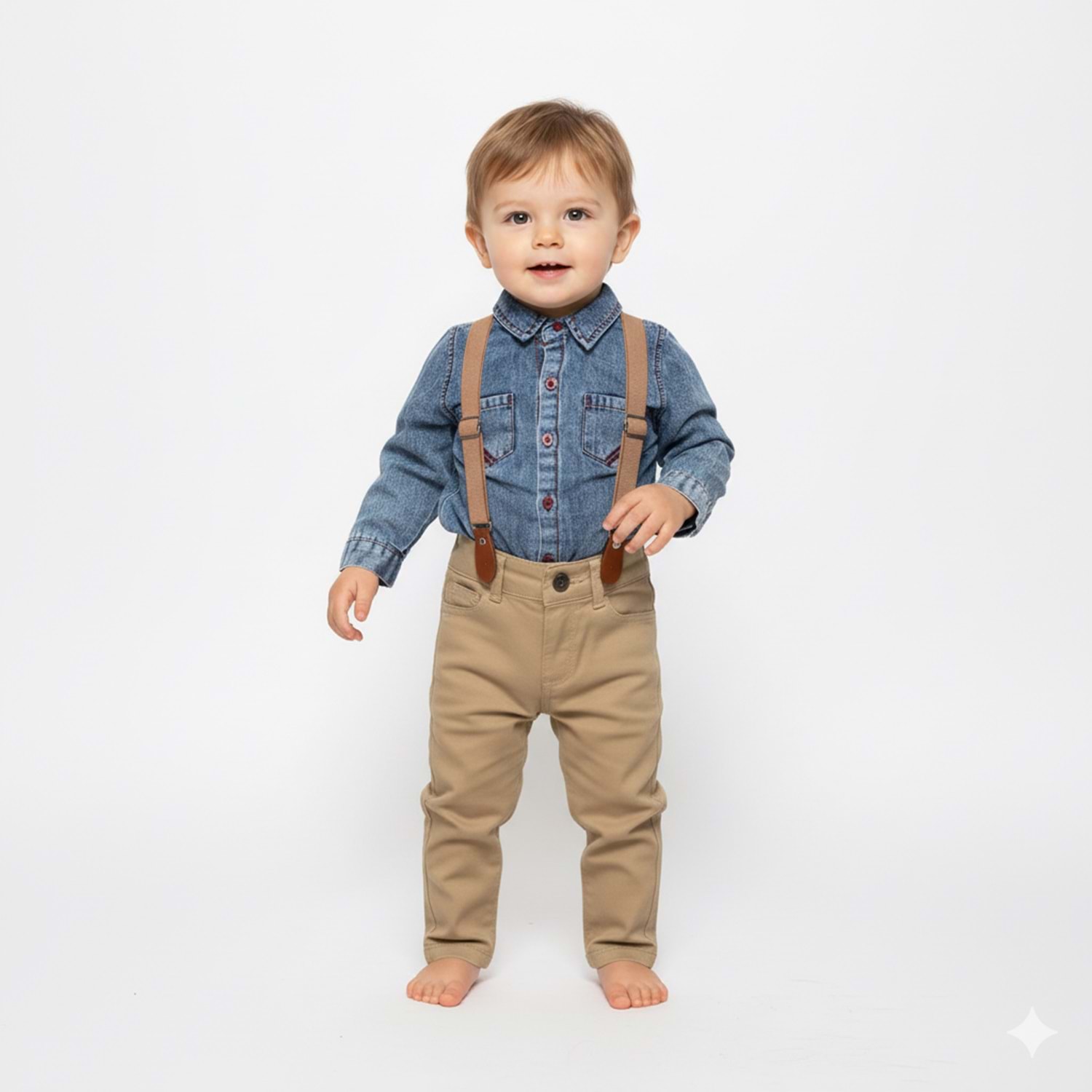 Gabardin Pantolonlu Denim Gömlekli Bebek Takım