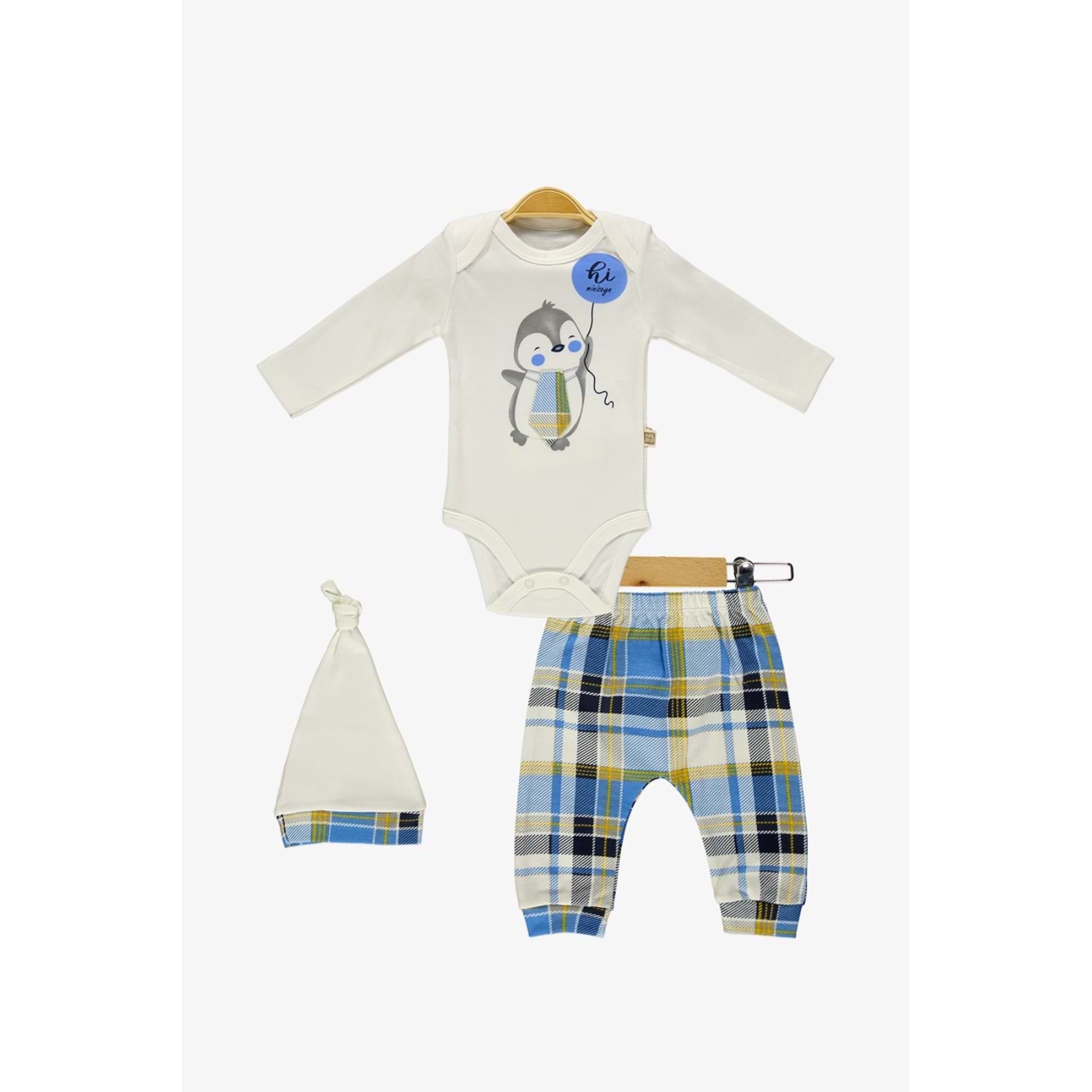 Erkek Bebek Ekose Pantolonlu Şapkalı Body Takım SB587