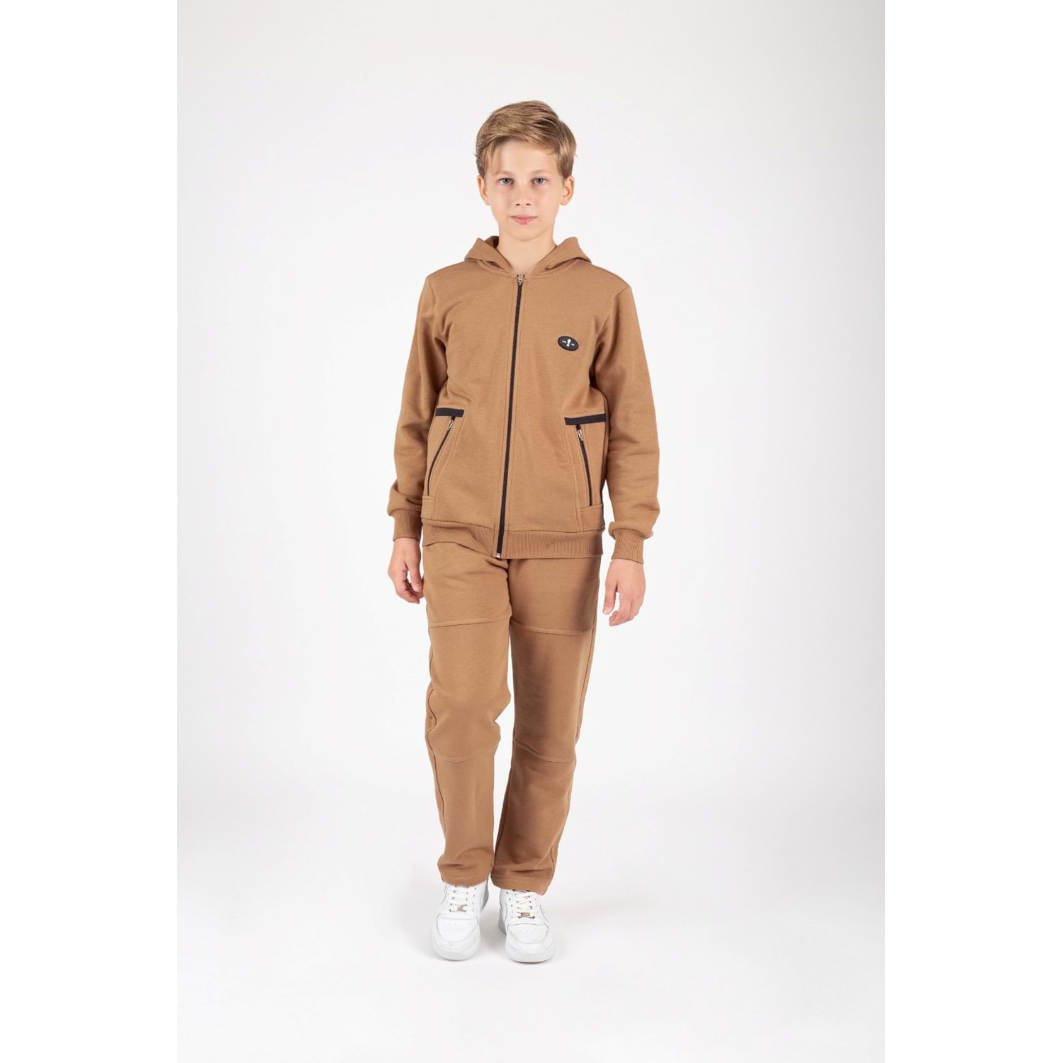 Kapüşonlu, fermuarlı ve cep detaylı 2 parçadan oluşan erkek çocuk eşofman takımı; beli lastikli şık tasarımıyla çocuk modasında fark yaratır.