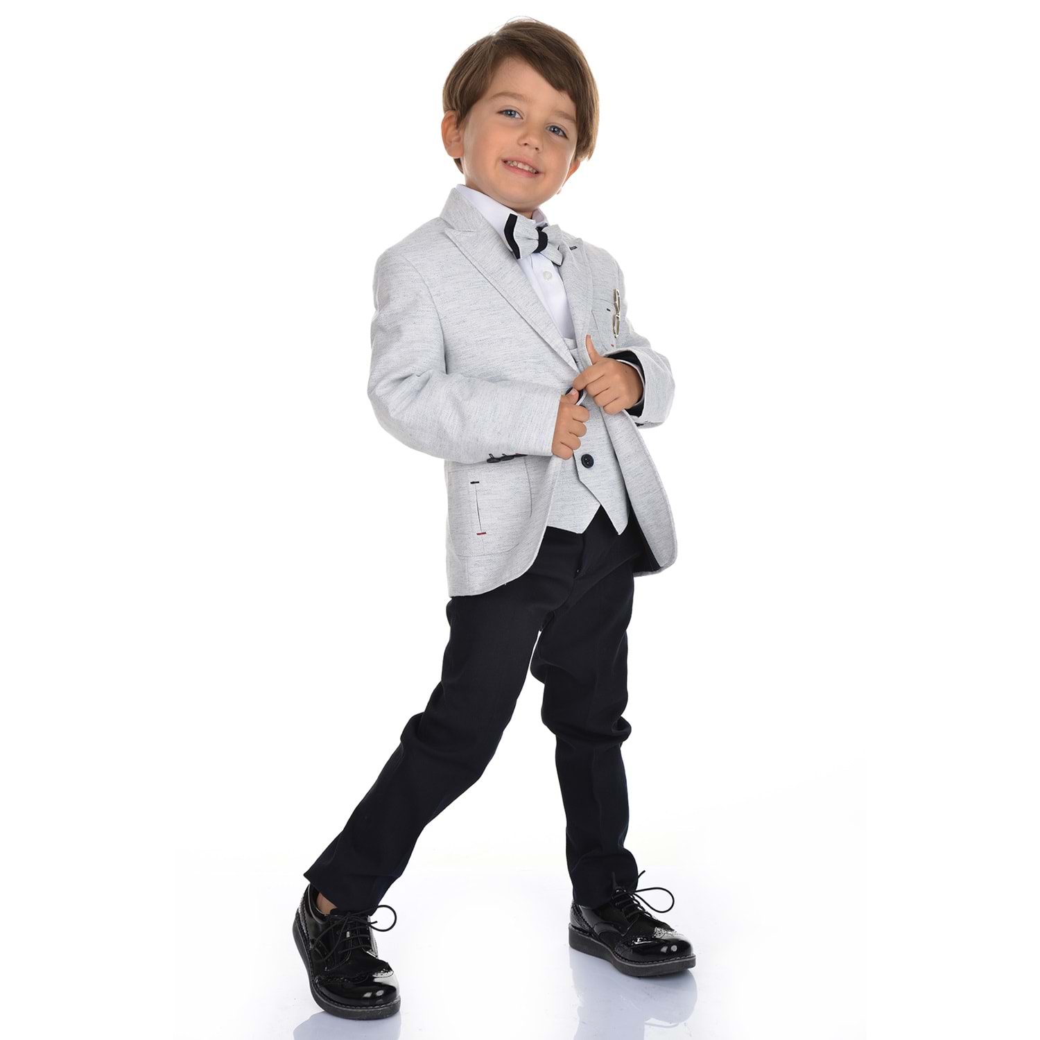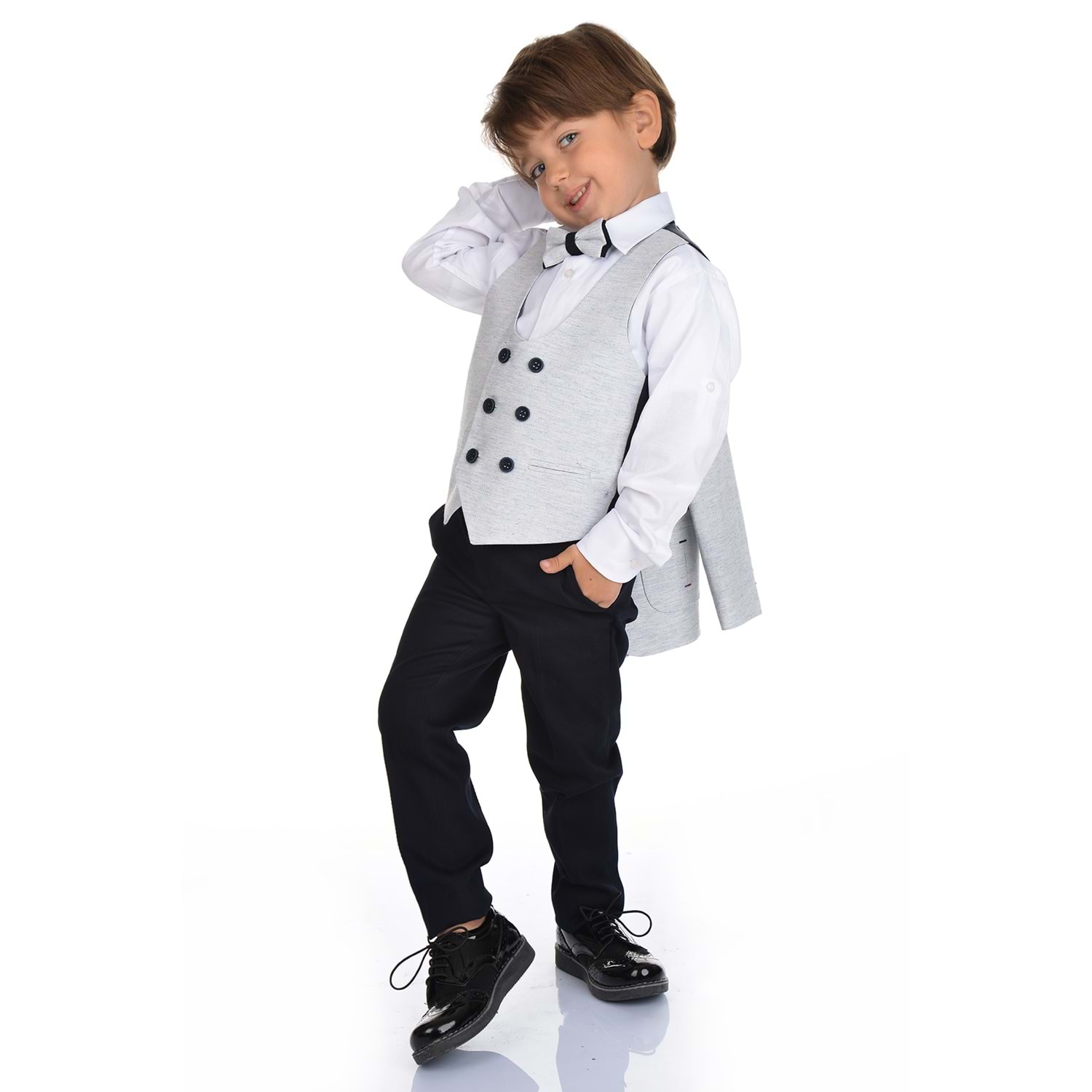 Gömlek, Yelek, Pantolon, Ceket ve Papyon olarak 5 parçadan oluşan Erkek Çocuk Takım. Pantolonlar Lacivert renktir.