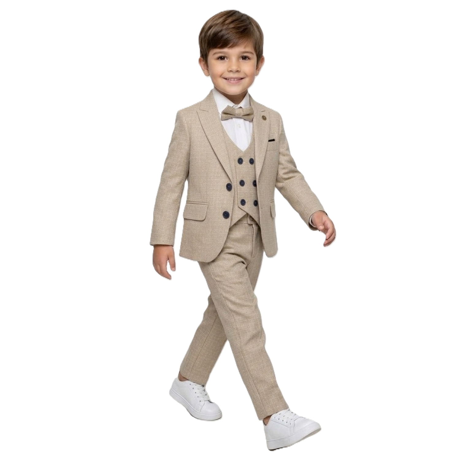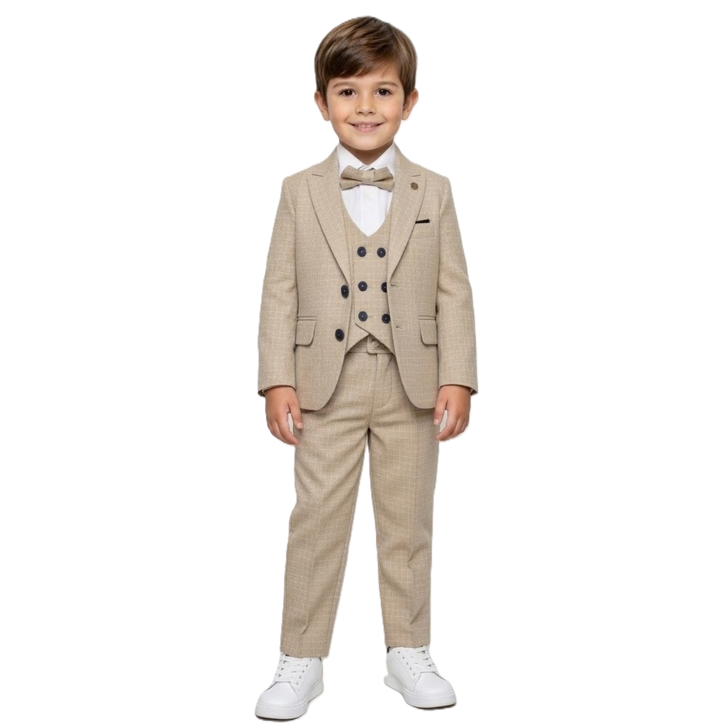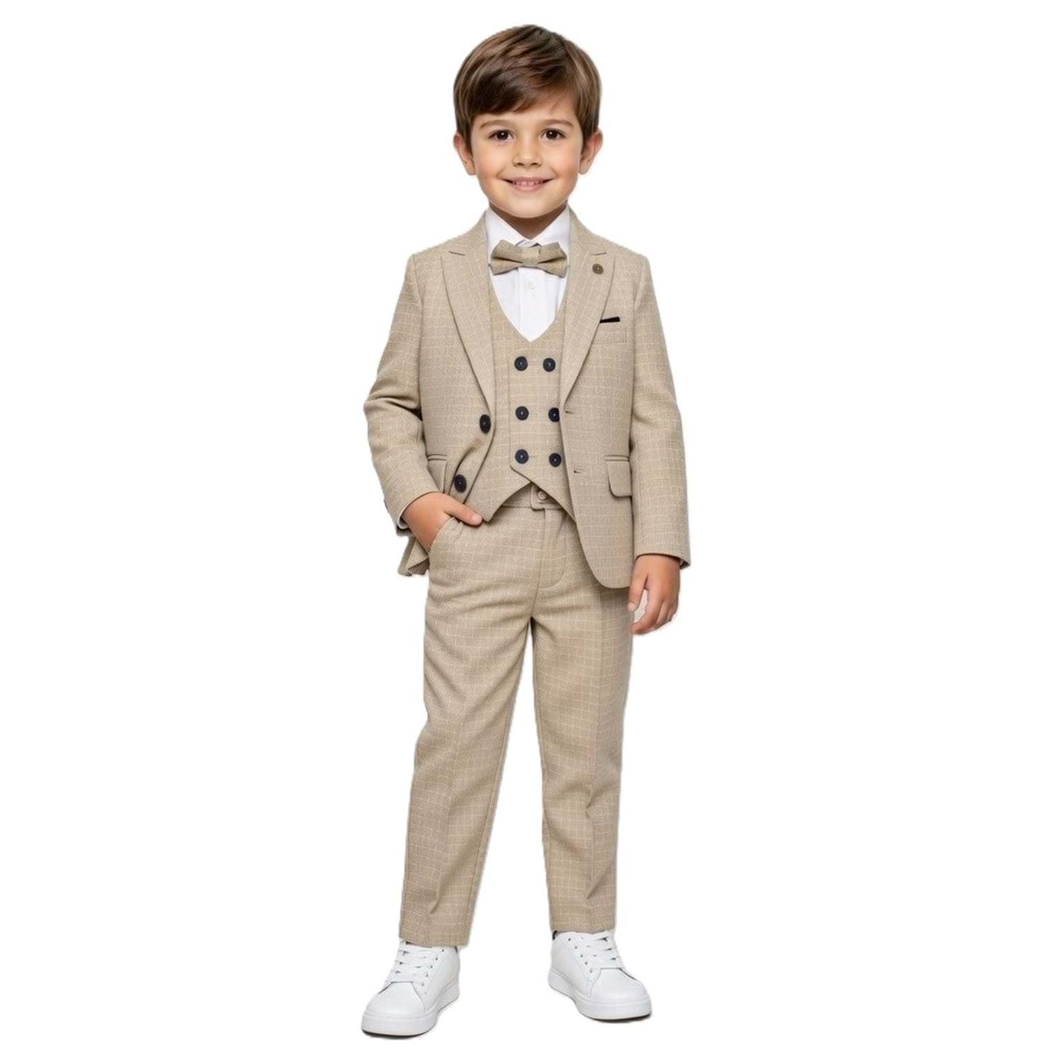 Ekose Desen Yelekli Papyonlu Ceketli Erkek Çocuk Takım Elbise