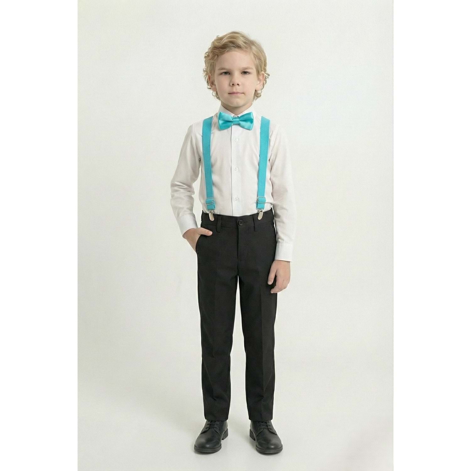 Şıklık ve konforu bir araya getiren bu dört parçalı çocuk takımı, düğün, nişan,23 nisan,çocuk bayramı, 19 mayıs, okuma bayramı, hatim merasimi, doğum günü, bayram, okul etkinlikleri ve fotoğraf çekimleri için ideal bir seçimdir. Set; siyah gabardin pantolon, beyaz gömlek, askı ve papyon ile birlikte gönderilir.