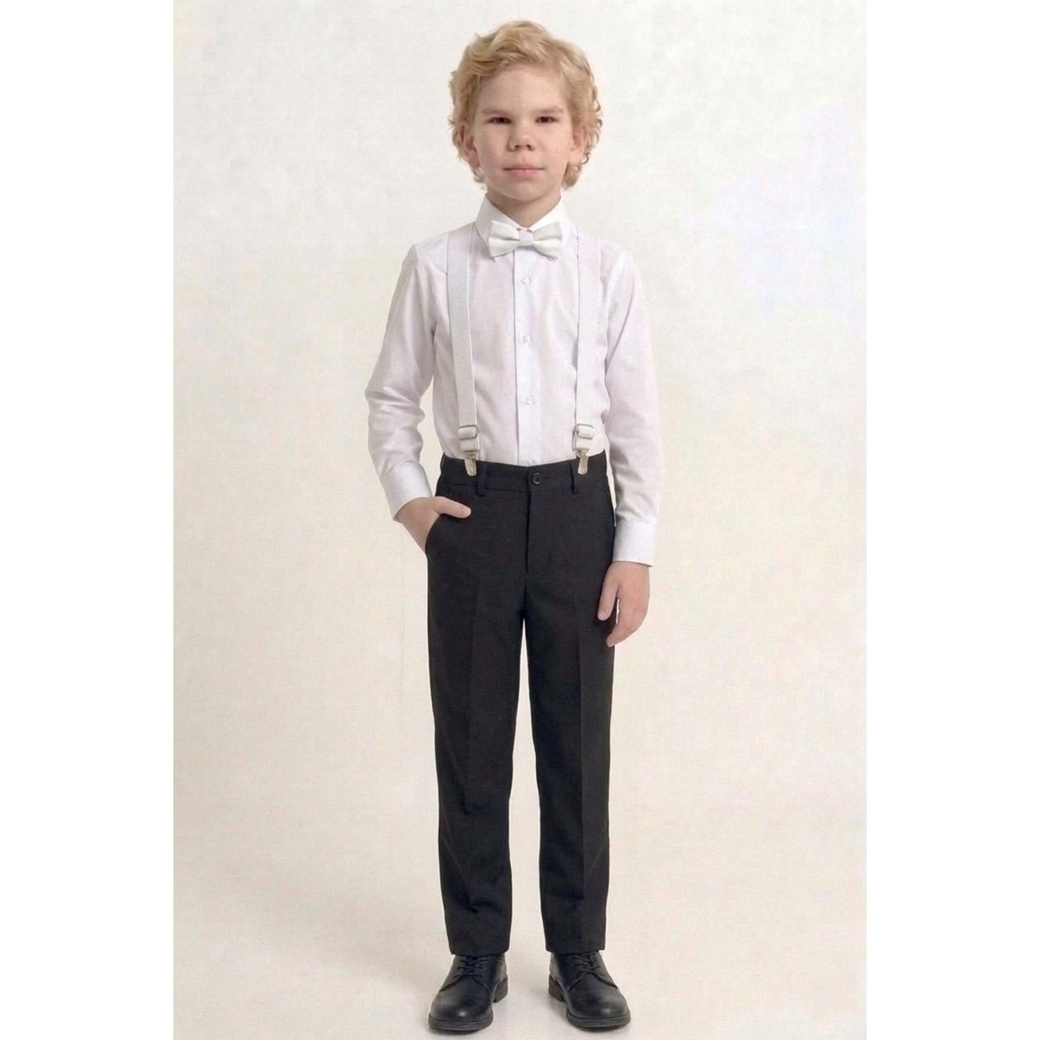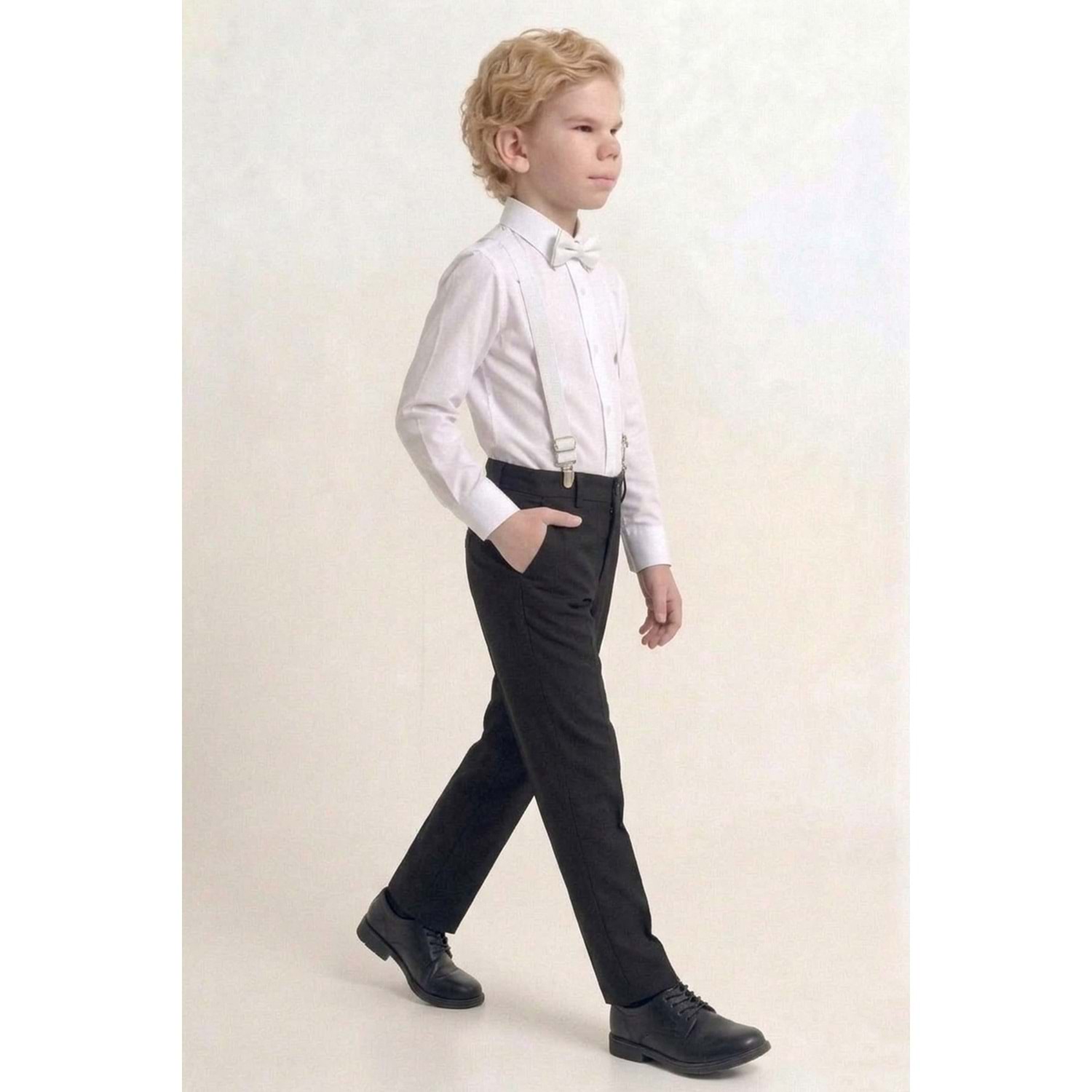 Şıklık ve konforu bir araya getiren bu dört parçalı çocuk takımı, düğün, nişan,23 nisan,çocuk bayramı, 19 mayıs, okuma bayramı, hatim merasimi, doğum günü, bayram, okul etkinlikleri ve fotoğraf çekimleri için ideal bir seçimdir. Set; siyah gabardin pantolon, beyaz gömlek, askı ve papyon ile birlikte gönderilir.