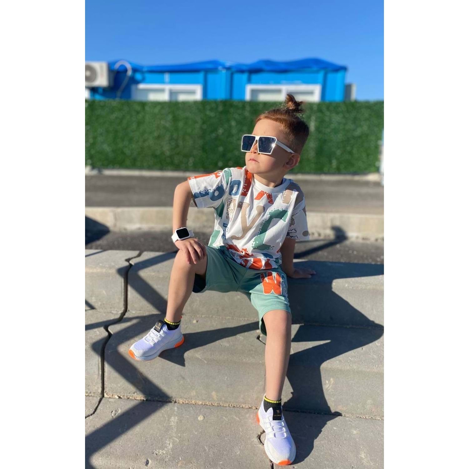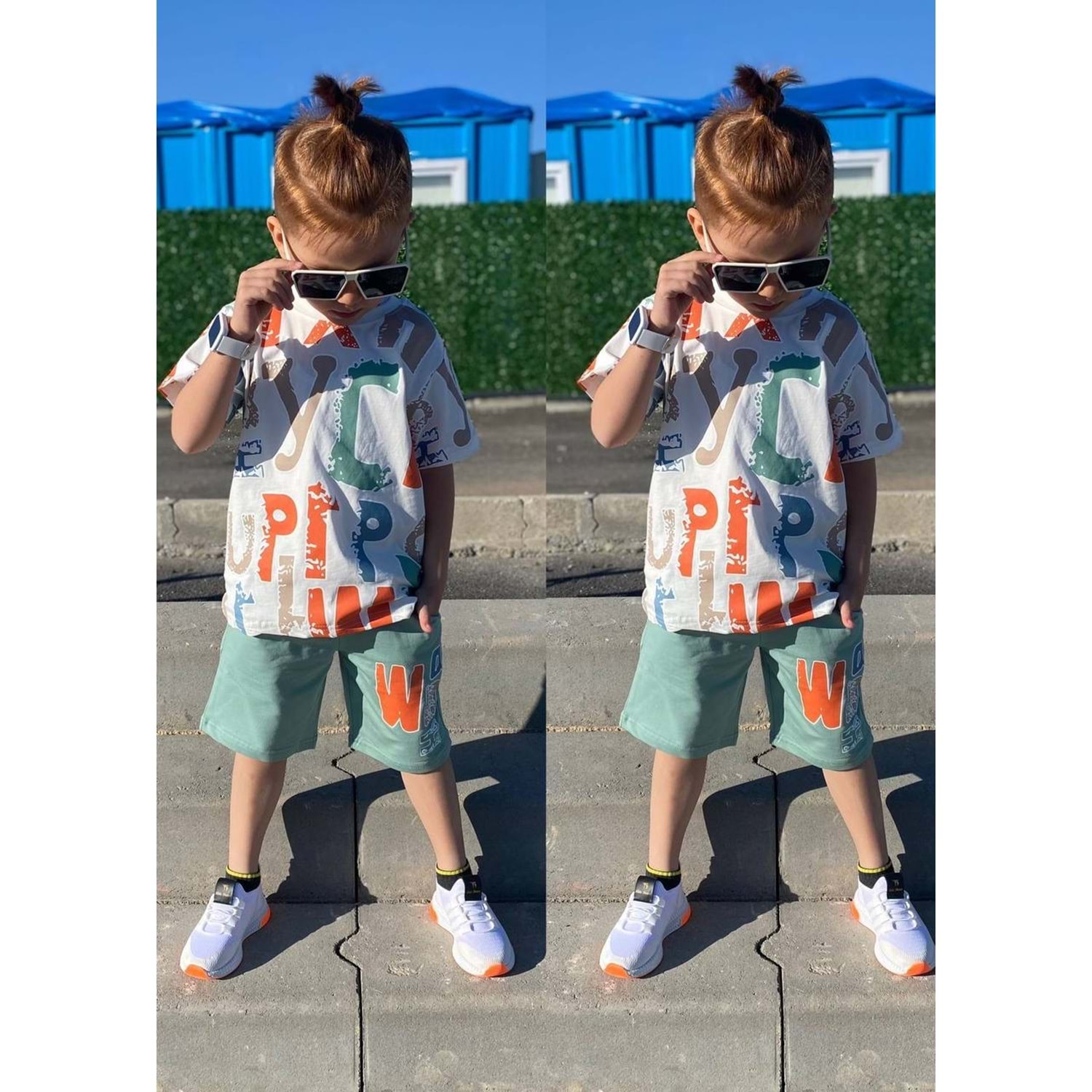 Yumuşacık penye kumaşa şortu cepli , üst baskılı süprem erkek çocuk takım