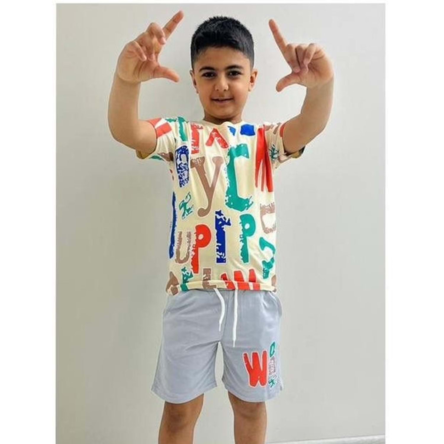 Yumuşacık penye kumaşa şortu cepli , üst baskılı süprem erkek çocuk takım