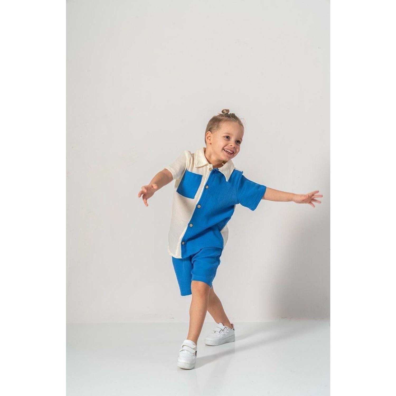 Şortlu Pamuklu Yazlık Müslin Erkek Çocuk Takım M00733