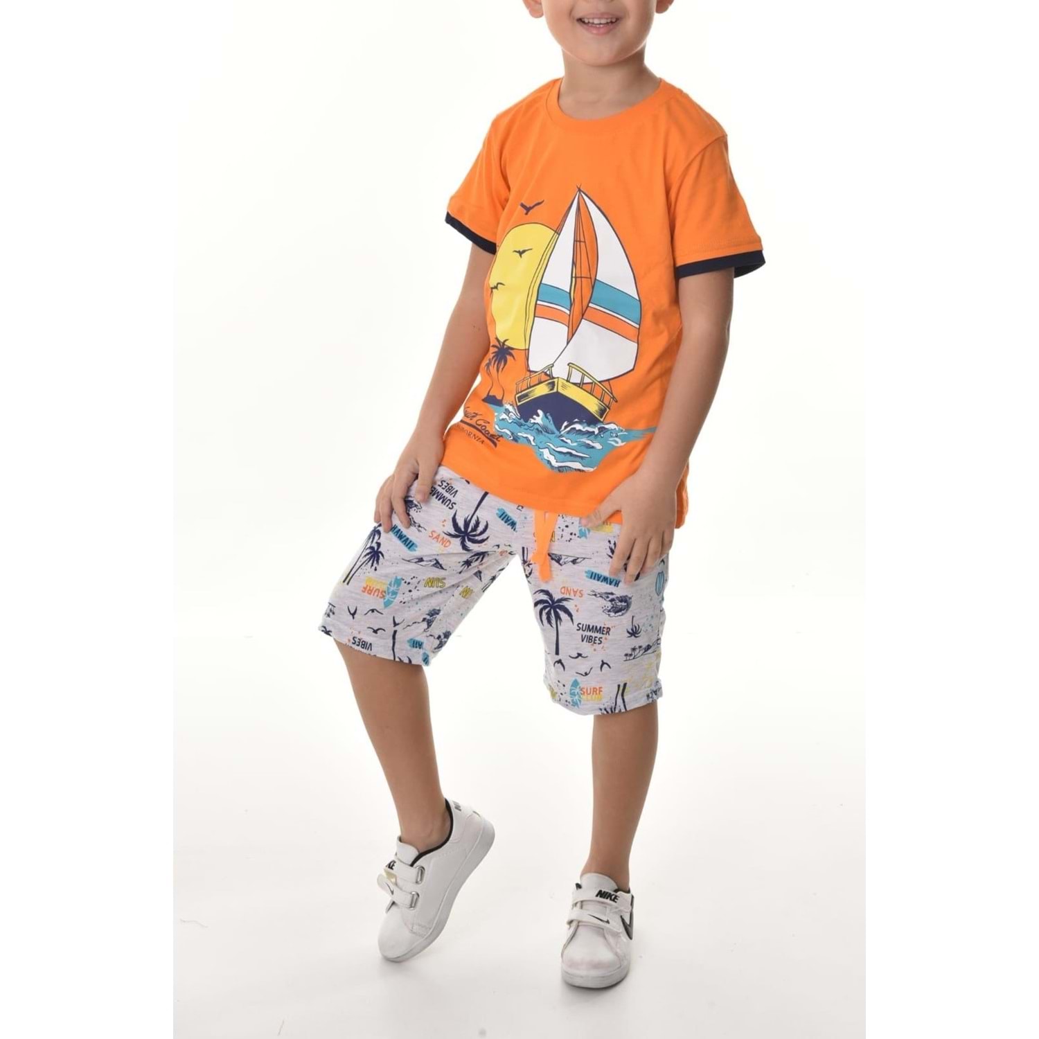 Yumuşacık penye kumaşa şortu cepli , üst baskılı süprem erkek çocuk takım