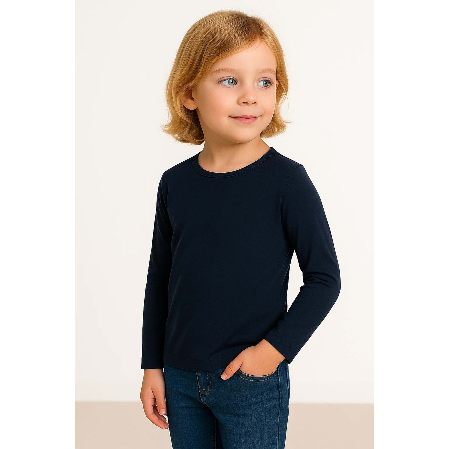 Likralı kız ve erkek çocuk için penye kumaştan imal edilmiş mevsimlik tişört.