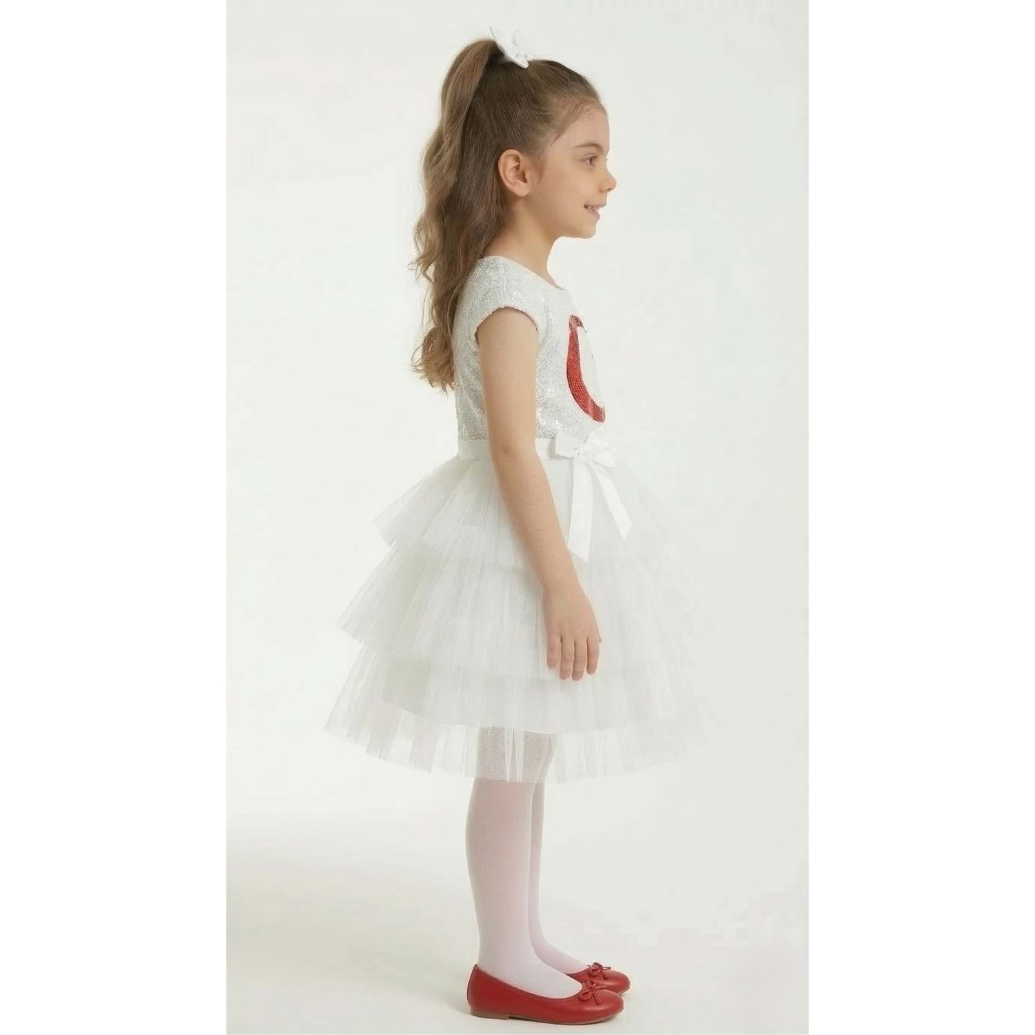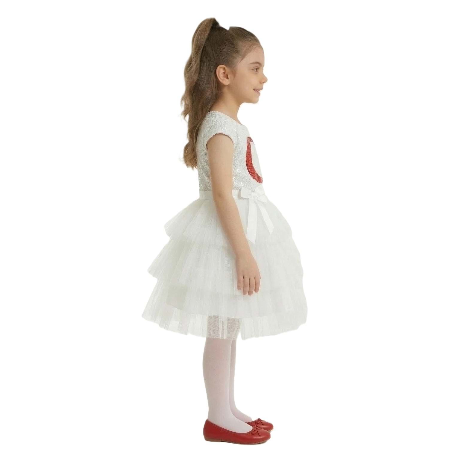 23 Nisan ve Milli Bayramlara Özel: Pul Payetli Ay Yıldızlı Kız Çocuk Elbisesi (Kırmızı & Beyaz)