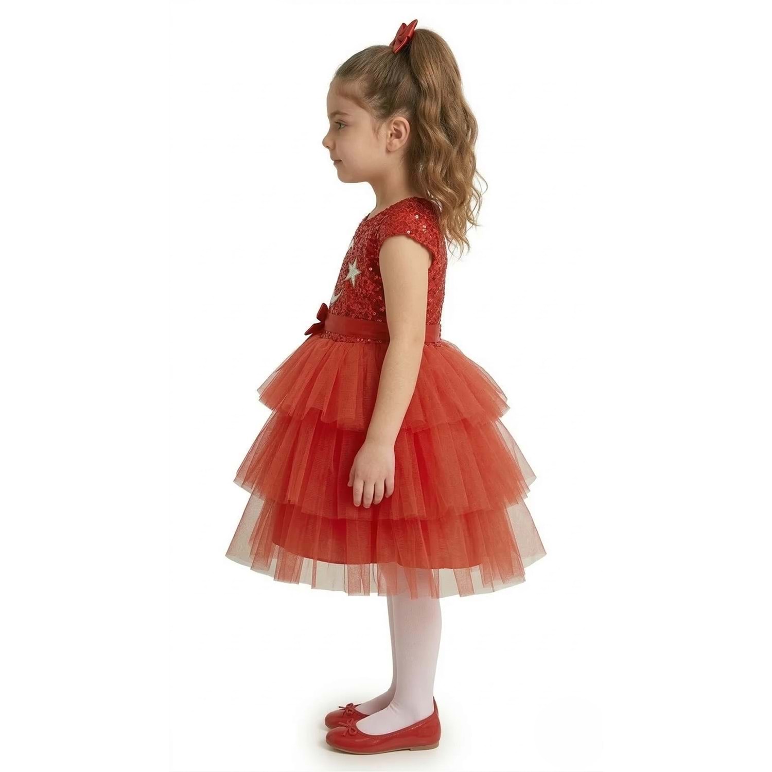 23 Nisan ve Milli Bayramlara Özel: Pul Payetli Ay Yıldızlı Kız Çocuk Elbisesi (Kırmızı & Beyaz)