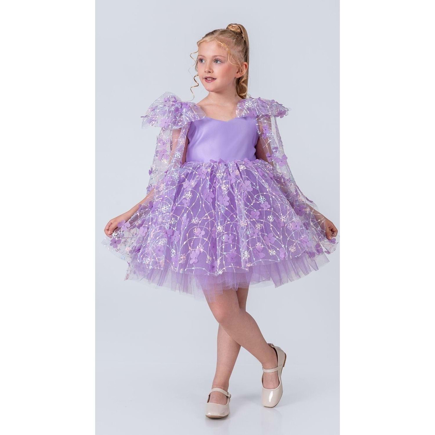Çiçek Motif Tüllü Kız Çocuk Abiye Elbise SB736