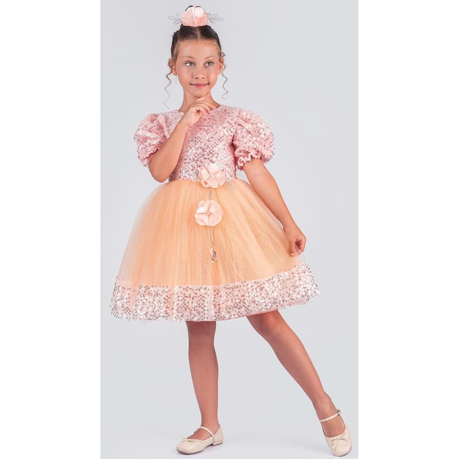 Etek Ucu Pul Detaylı Kız Çocuk Elbise