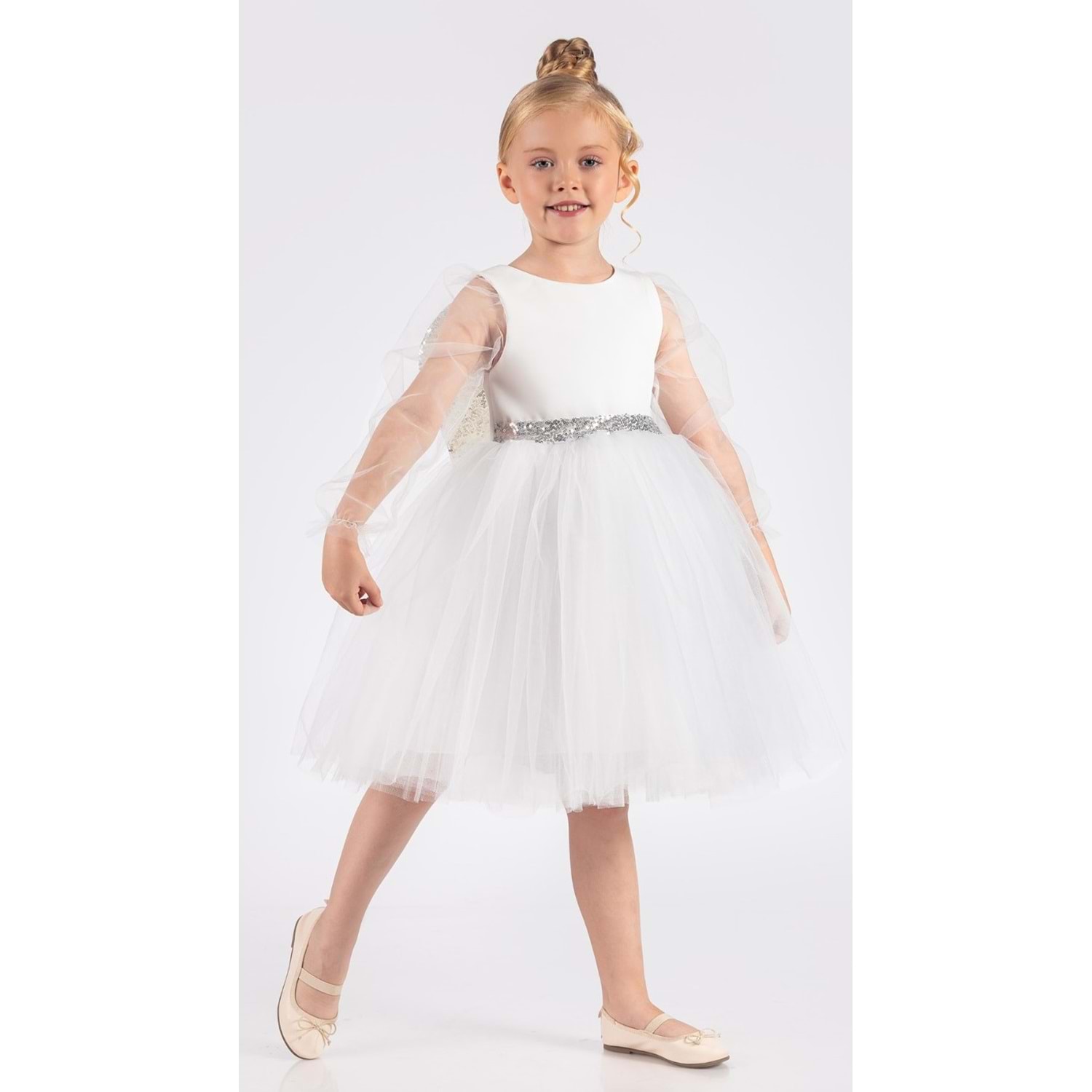 Alt kısmı %100 pamuk astar destekli olan kız çocuk abiye elbise, hassas ciltler için uygundur ve gün boyu rahat kullanım sağlar. Beden kalıpları standartlara uygundur.