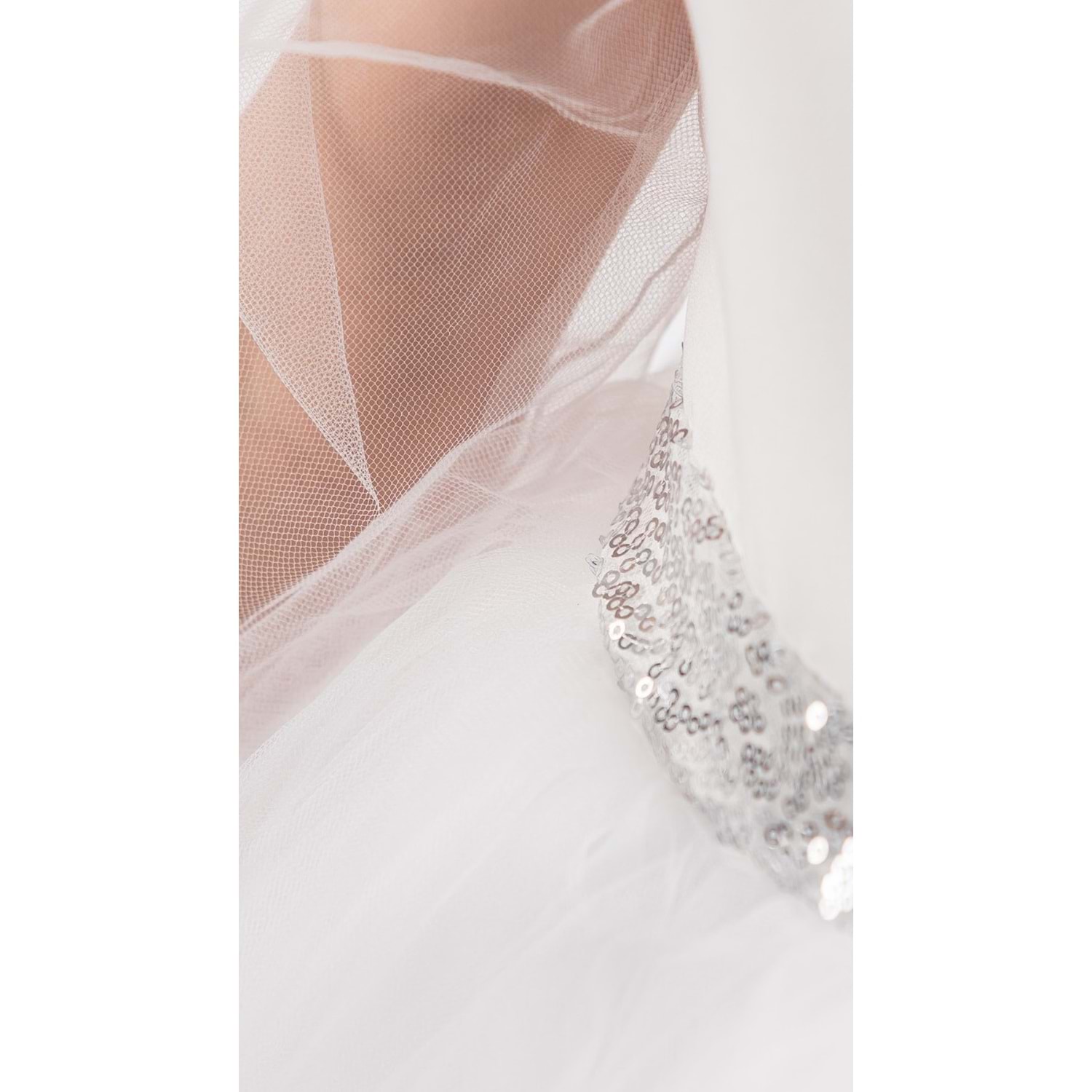 Elbise, tül kumaş kullanılarak modellenmiş olup sırt kısmı sünger desteklidir. Arka bölümde yer alan pul payet işlemeli kanat detayı, ürüne masalsı ve göz alıcı bir hava katar. Sırt kısmı fermuarlı yapıda olup kolay giyilip çıkarılabilir.