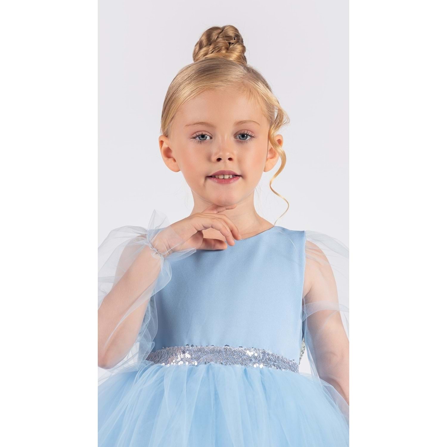 Alt kısmı %100 pamuk astar destekli olan kız çocuk abiye elbise, hassas ciltler için uygundur ve gün boyu rahat kullanım sağlar. Beden kalıpları standartlara uygundur.