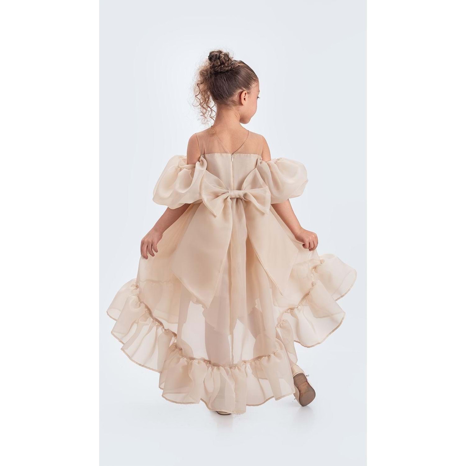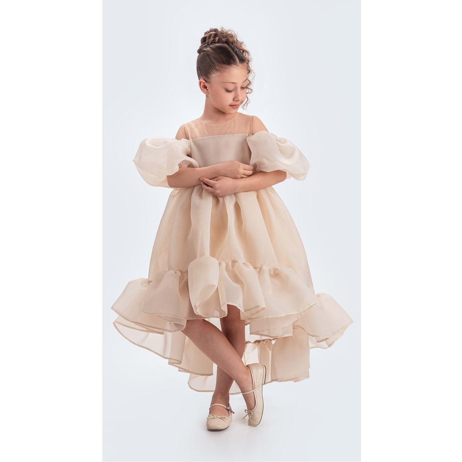 Alttan tütülü kız çocuk abiye elbise, şıklığı, rahatlığı ve zarif duruşu ile miniklerin en özel anlarına eşlik eder.
