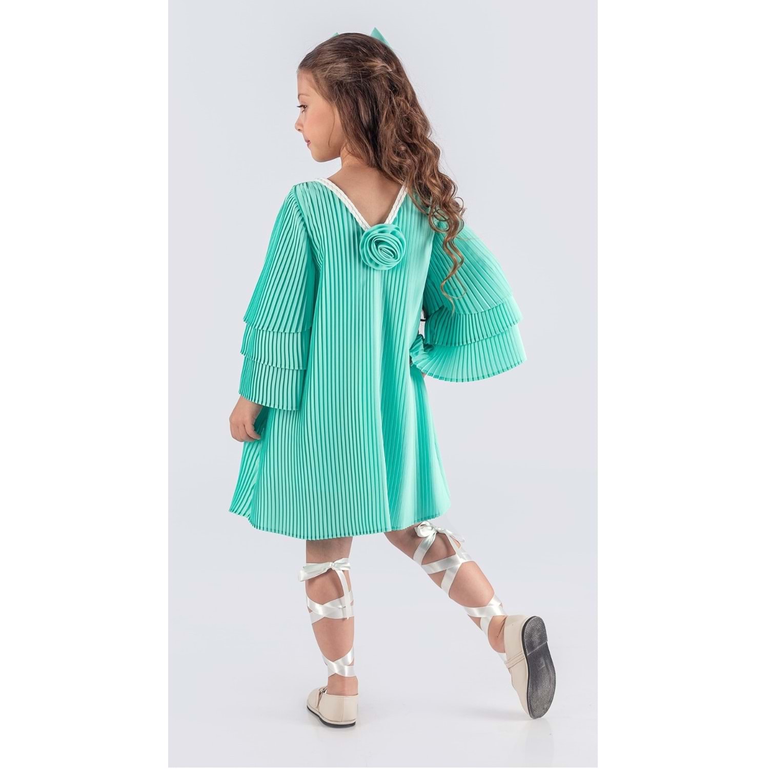 Kız Çocuk Boydan Krep Pliseli Elbise SB595