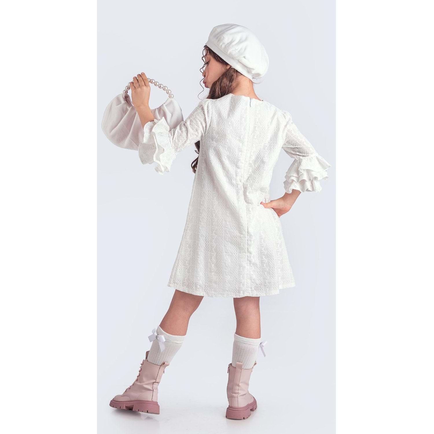 Bere , Çorap , Çanta ve Elbise Olmak Üzere 4 Parçadan Oluşan Kız Çocuk Tam Takım Elbise.