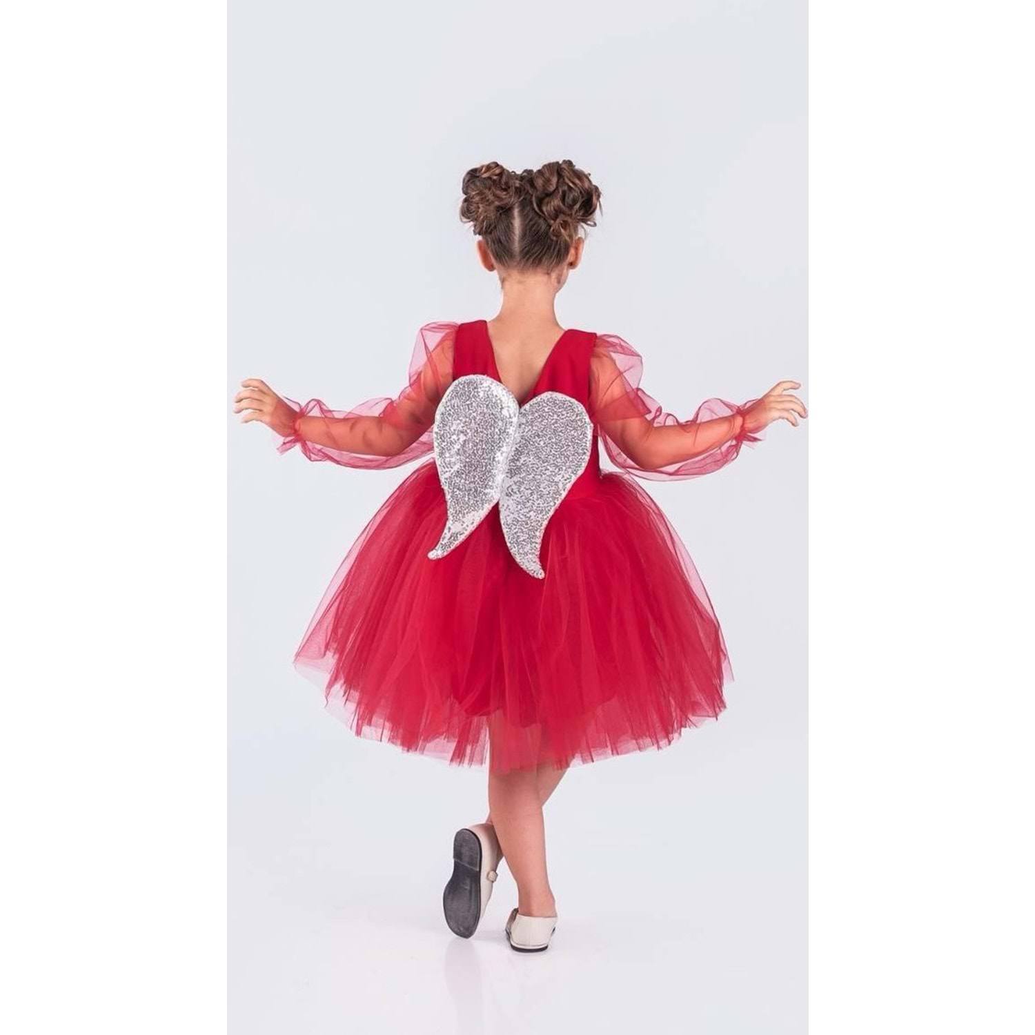 Özel günlerde miniklerin hayallerini süsleyen kanatlı pul payet detaylı tül kız çocuk abiye elbise, şık tasarımı ve konforlu yapısıyla dikkat çeker. Doğum günü, parti ve özel davetlerde zarif bir görünüm sunar.