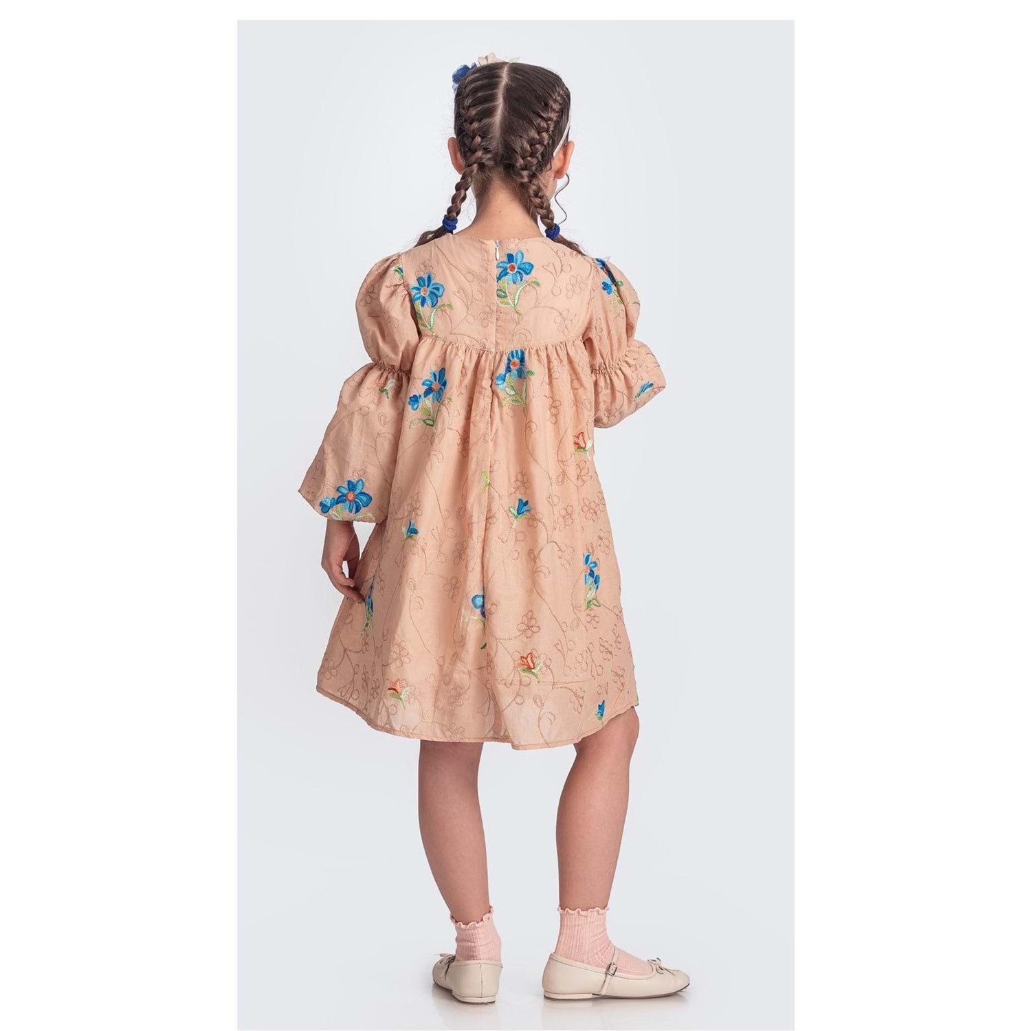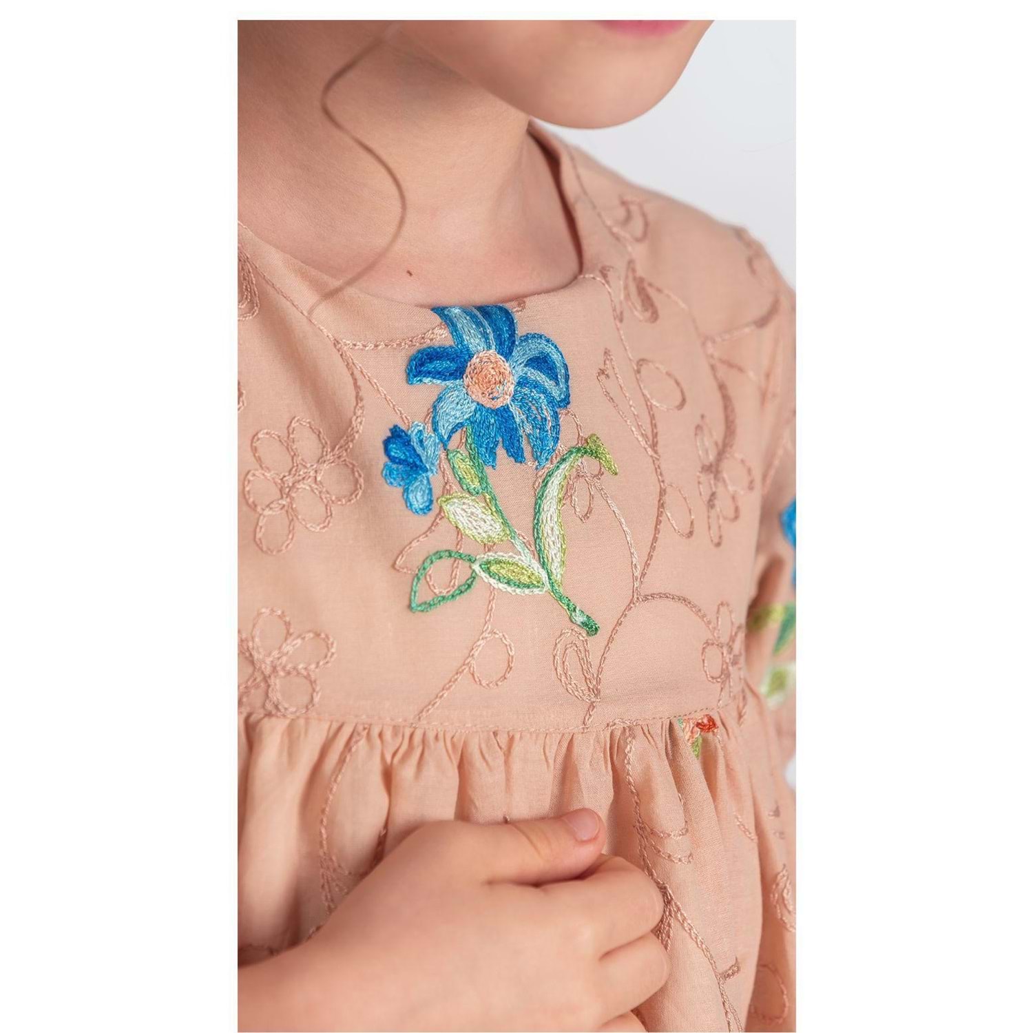 Pamuklu Müslin Kumaştan Üretilmiş Uzun Kol Toka İle Birlikte 2 Parça Kız Çocuk Elbise