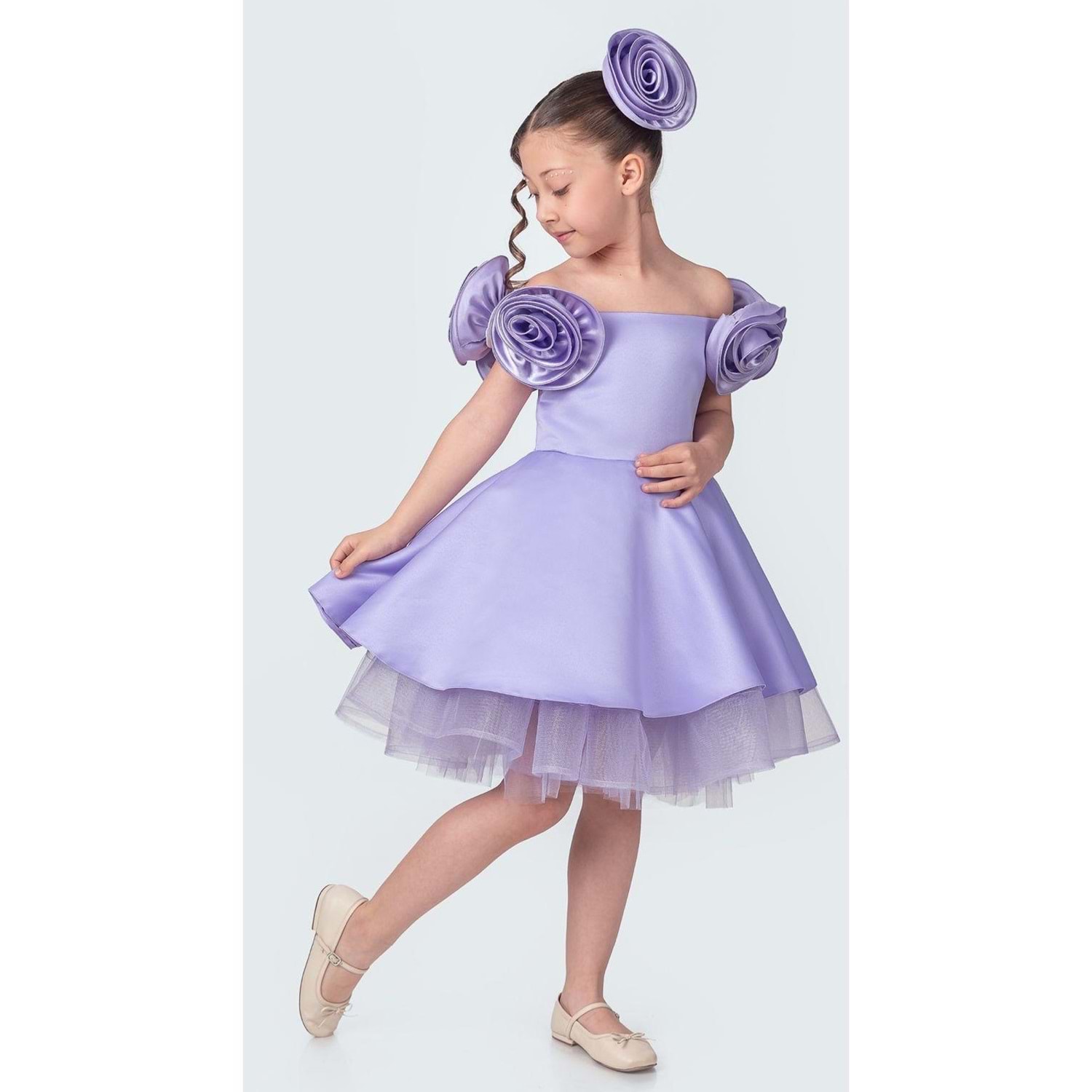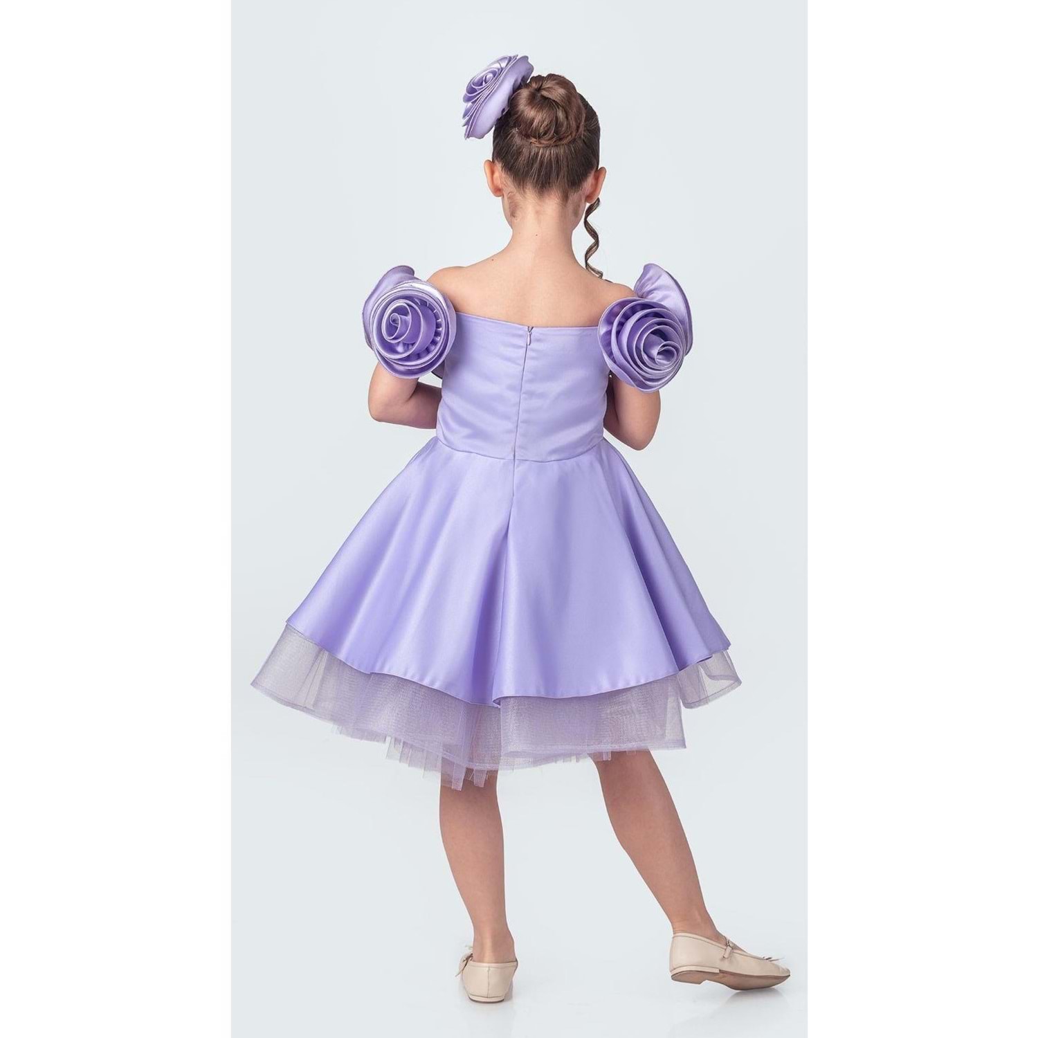 Omuz Gül Motifli Kız Çocuk Abiye Elbise SB735