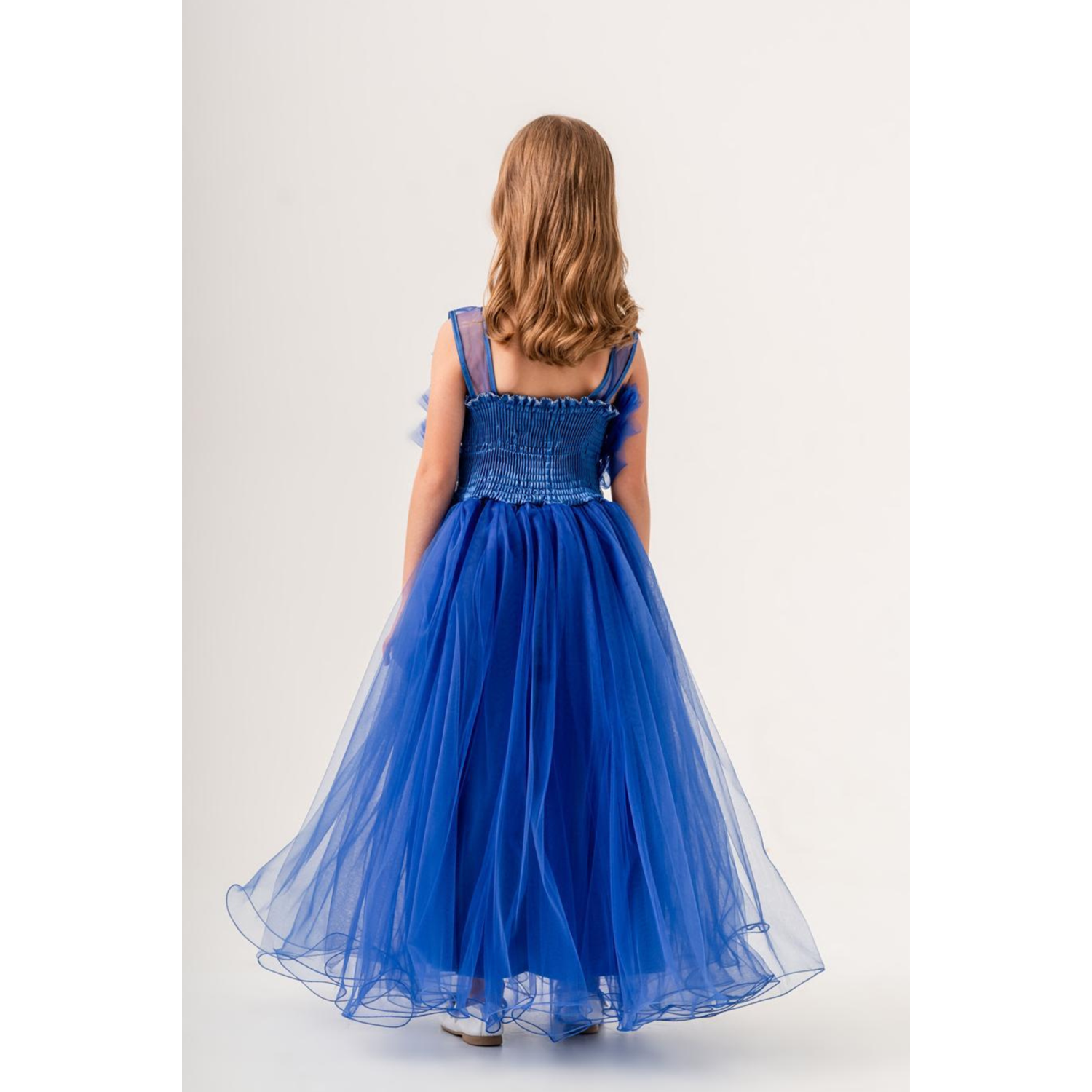 Minik prensesler için tasarlanmış robasi katlı özel gün abiye elbise, sırt kısmı gipe lastikli ve uzun etek alt kısmı astarlıdır. Düğün, mezuniyet, doğum günü veya özel günlerde rahat ve şık bir kullanım sağlar.