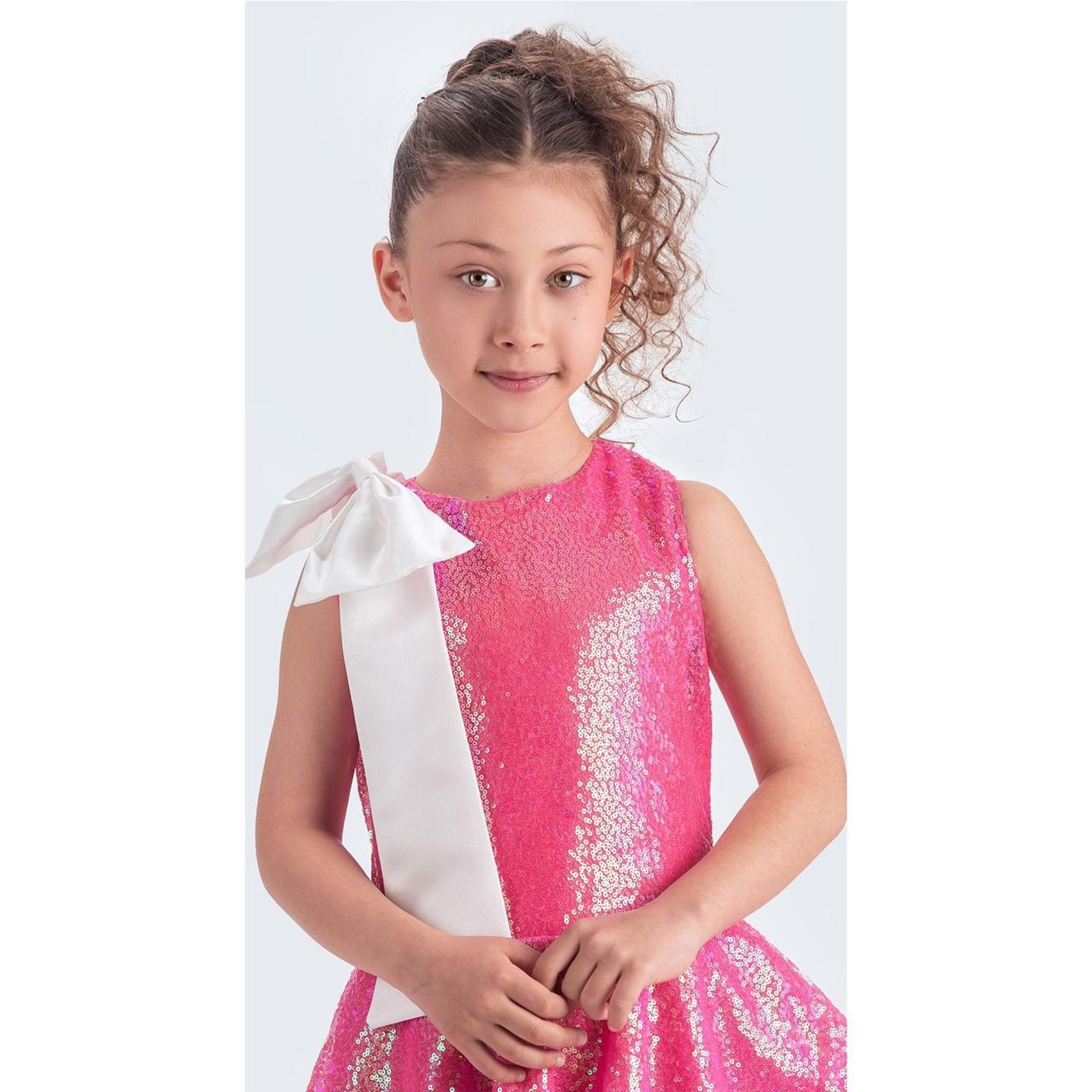 Yaka Fiyonklu Pul Payet Işıltılı Kız Çocuk Abiye Elbise – Özel Günlerin Parlayan Yıldızı