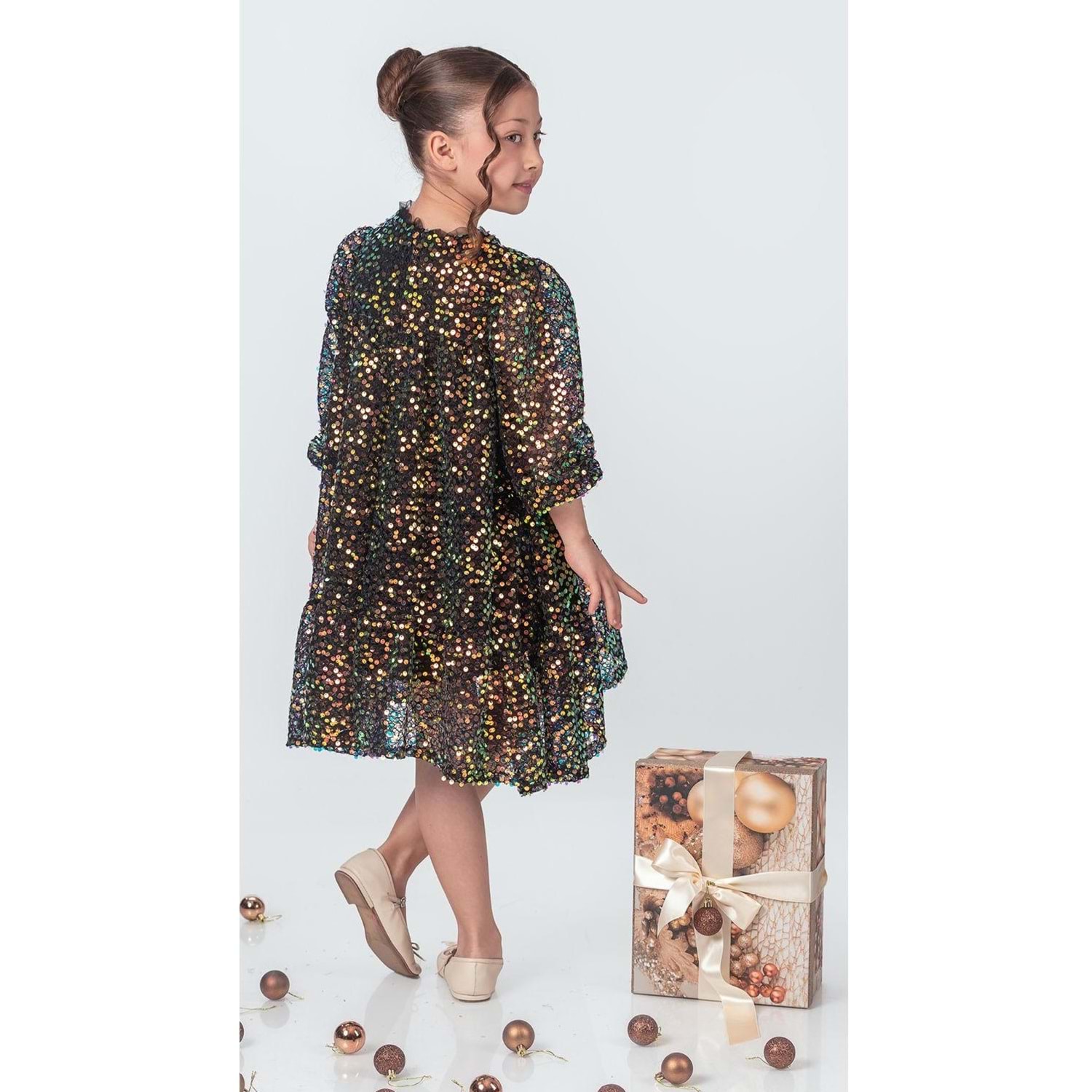 Kız Çocuk Pul-Payet Kumaş İle Üretilmiş Alttan Astarlı 4-5-6-7-8 Yaş Abiye Elbise
