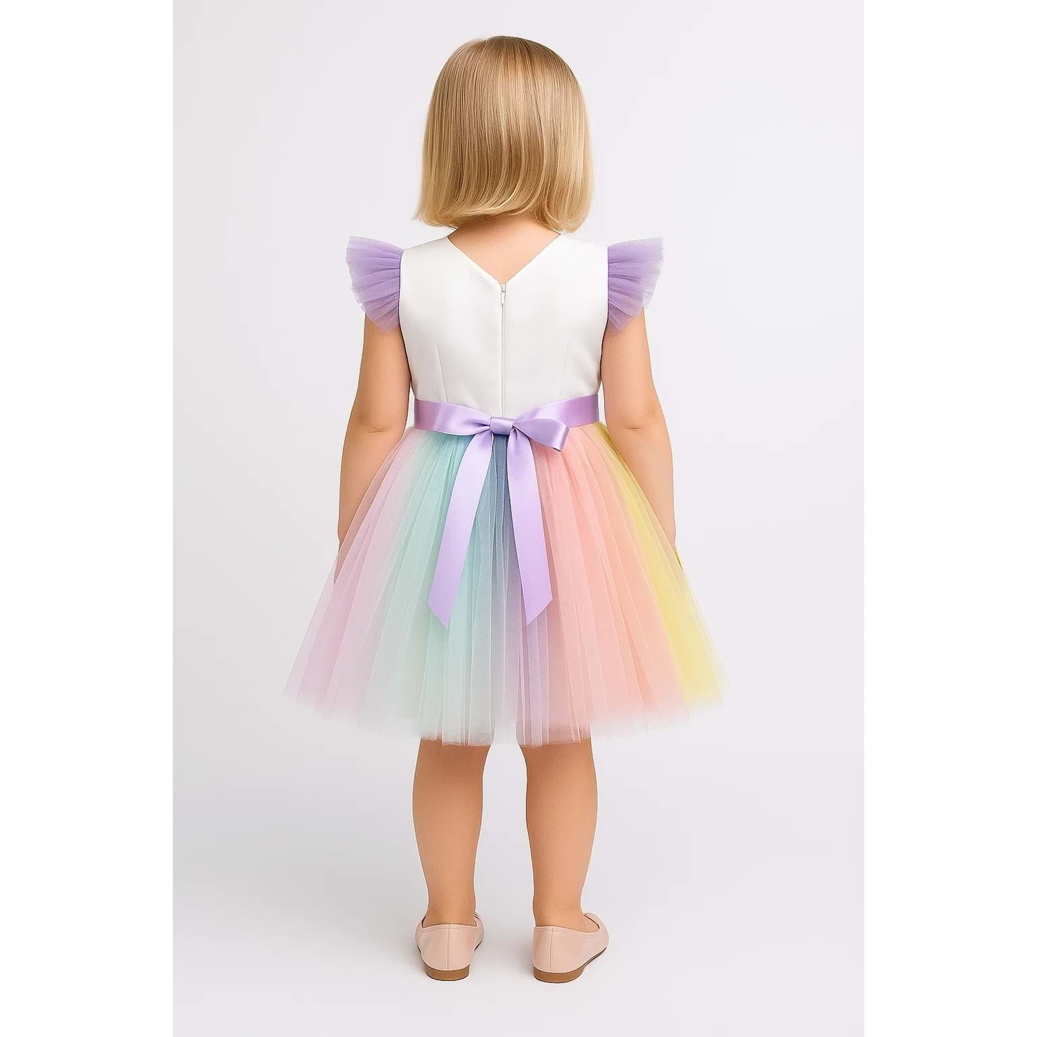 Canlı renkleri ve eğlenceli tasarımıyla öne çıkan rengarenk saç bantlı kız çocuk parti elbisesi, özel günlerde ve partilerde minik prenseslerin enerjisini yansıtır. Doğum günü partileri, kutlamalar, etkinlikler ve özel davetler için ideal bir seçimdir.