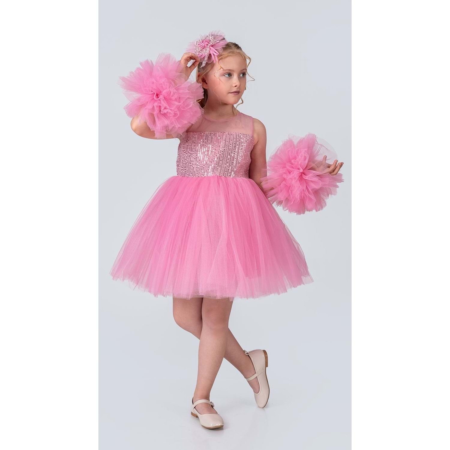 Minik prensesinizin özel günlerinde ışıltısını artıracak bu ponpon kollu tütü abiye elbise ile unutulmaz anılar biriktirin. Çeşitli renk seçenekleri arasından dilediğinizi seçin ve onların hayallerini gerçeğe dönüştürün!