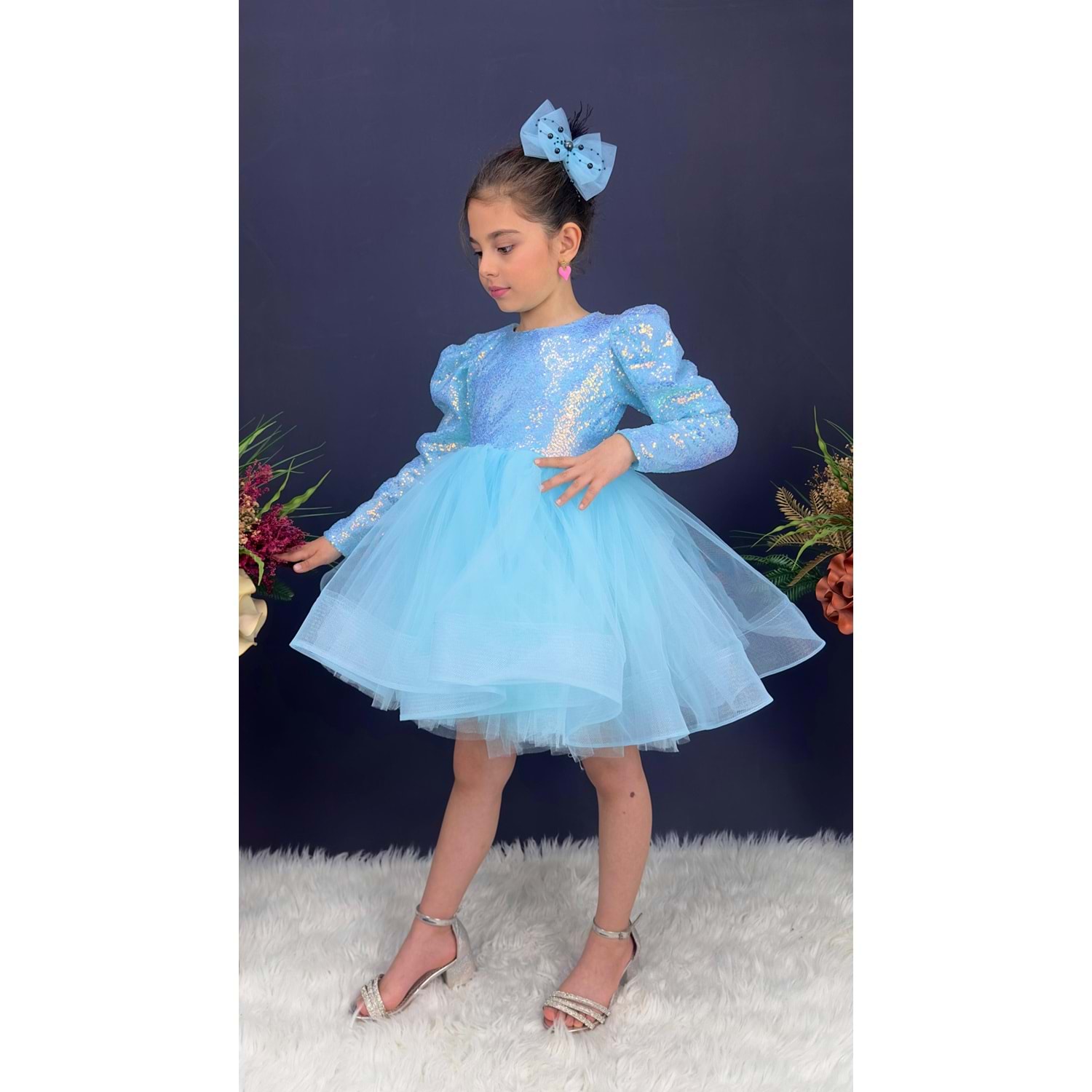 Payetli Tütülü Kız Çocuk Uzun Kol Parti, Doğum Günü, Özel Gün Abiye