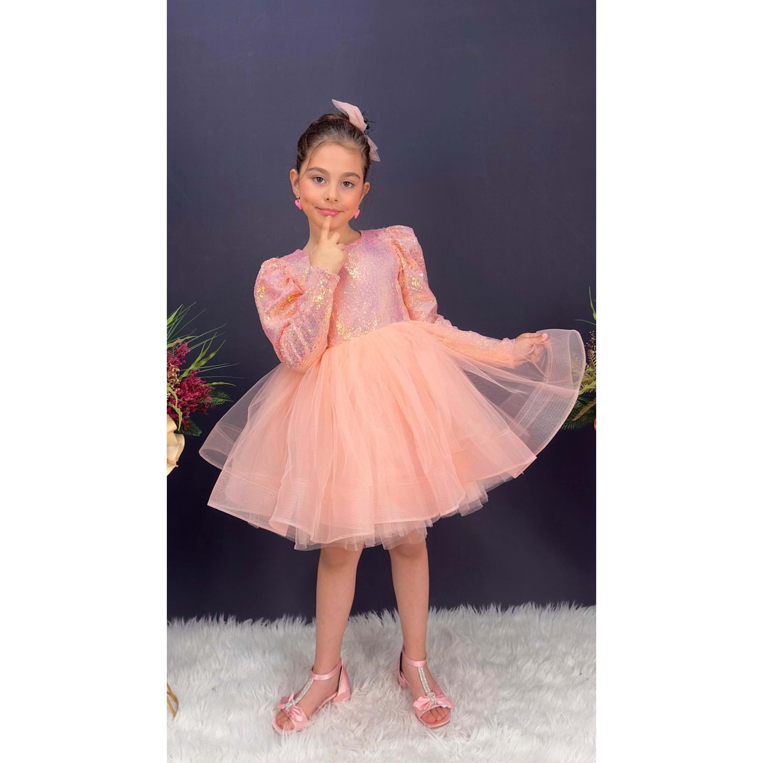 Payetli Tütülü Kız Çocuk Uzun Kol Parti, Doğum Günü, Özel Gün Abiye