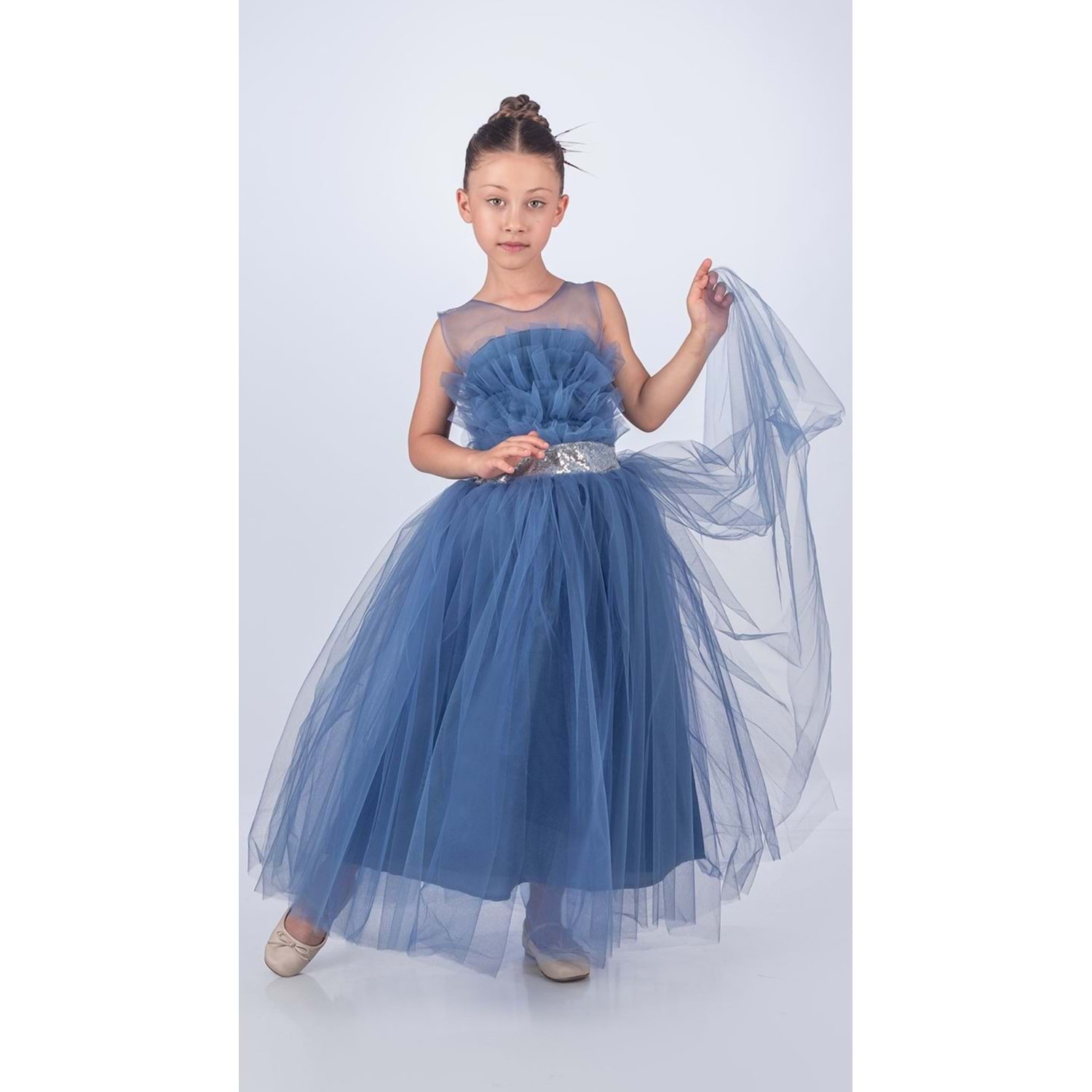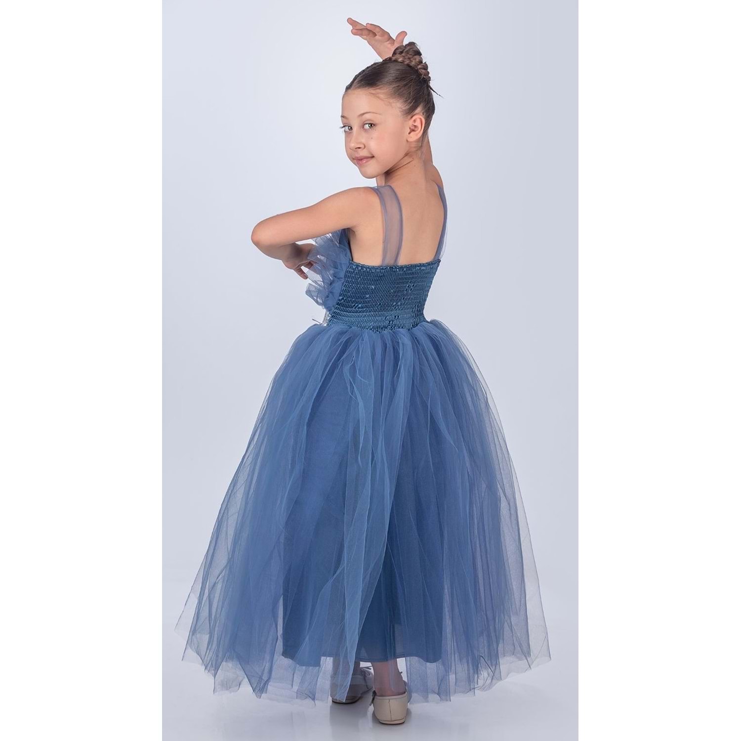 Şıklık, zarafet ve konfor bir arada! Kızınızın özel günlerde unutulmaz anılar biriktirmesini sağlayacak bu göz alıcı abiye elbise ile fark yaratın.