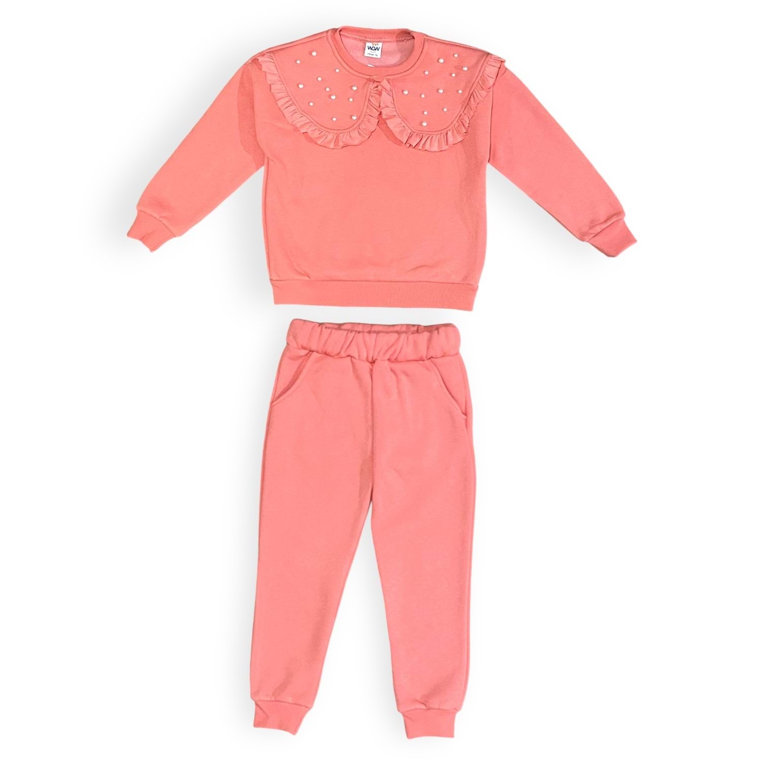 Kışlık İçi Polarlı 3 İplik Kız Çocuk Yaka Detaylı Eşofman Takım