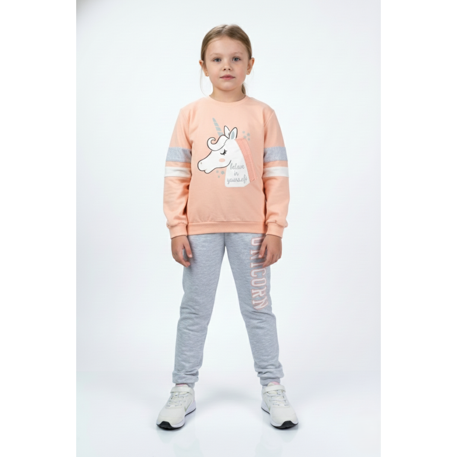 Kız çocuklarının enerjisine ve renkli dünyasına eşlik eden bu Unicorn baskılı eşofman takımı; yumuşak dokusu, rahat kalıbı ve sevimli tasarımıyla günlük kullanım için mükemmel bir tercih sunar.