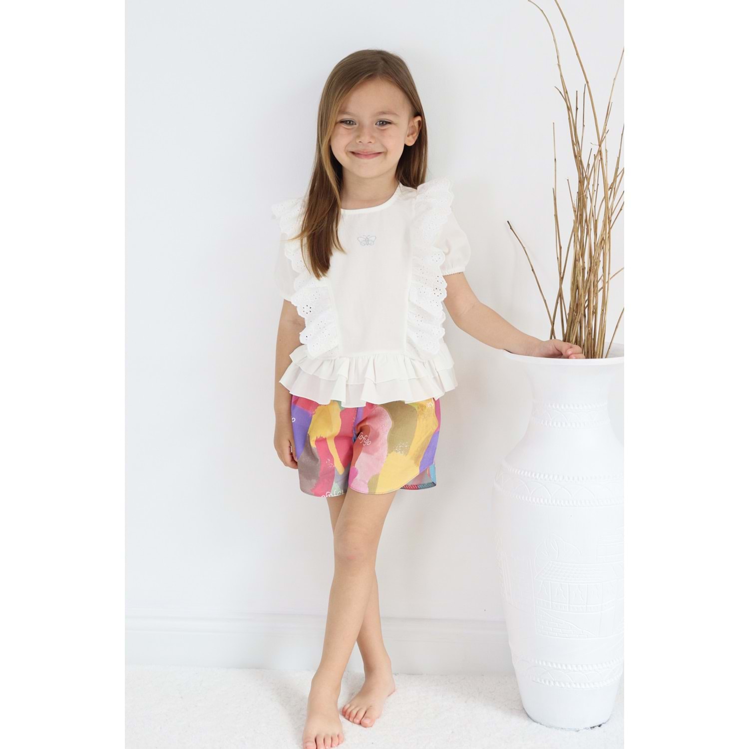 Şortlu Pamuk Dokuma Kız Çocuk Takım