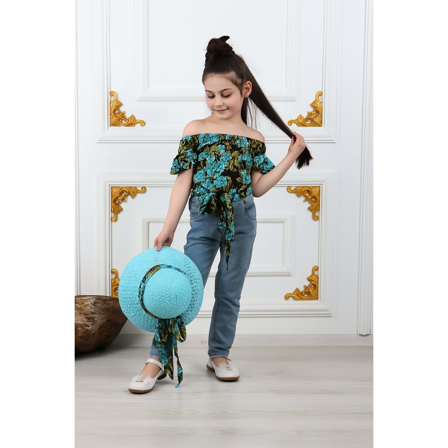 Kız Çocuk Kot Pantolon, Şapka , Bluz Takım