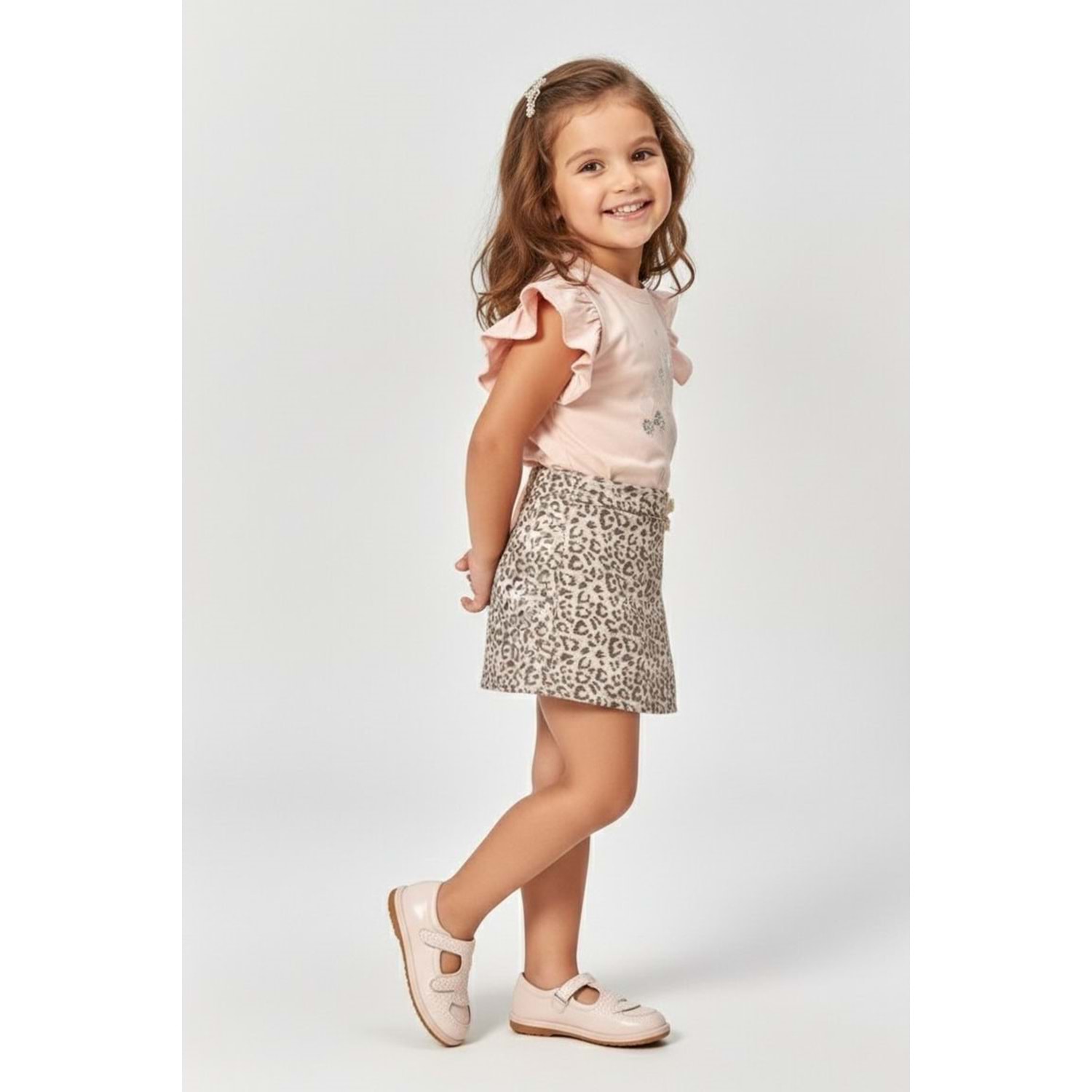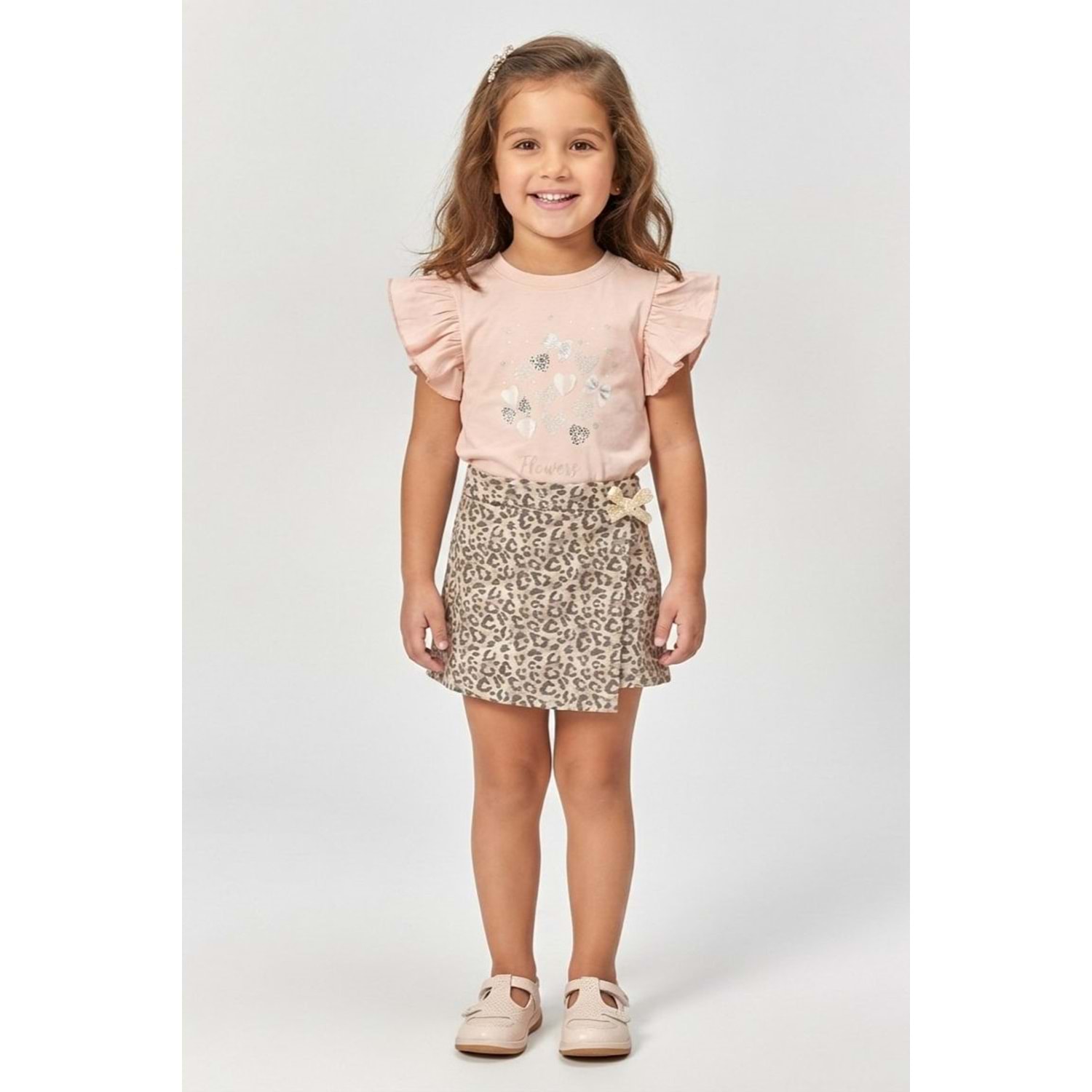 Yaz sezonunun en trend parçalarını kızınızın gardırobuna taşıyın! Hareketli minikler için özel olarak tasarlanan bu 2'li takım, ikonik leopar deseninin cazibesini, fırfır detayların sevimliliği ve simli baskıların ışıltısıyla buluşturuyor. Hem günlük kullanımda hem de özel günlerde çocuğunuzun tarzını yansıtacak bu kombin, konforundan ödün vermeyen şık prenseslerin favorisi olacak.