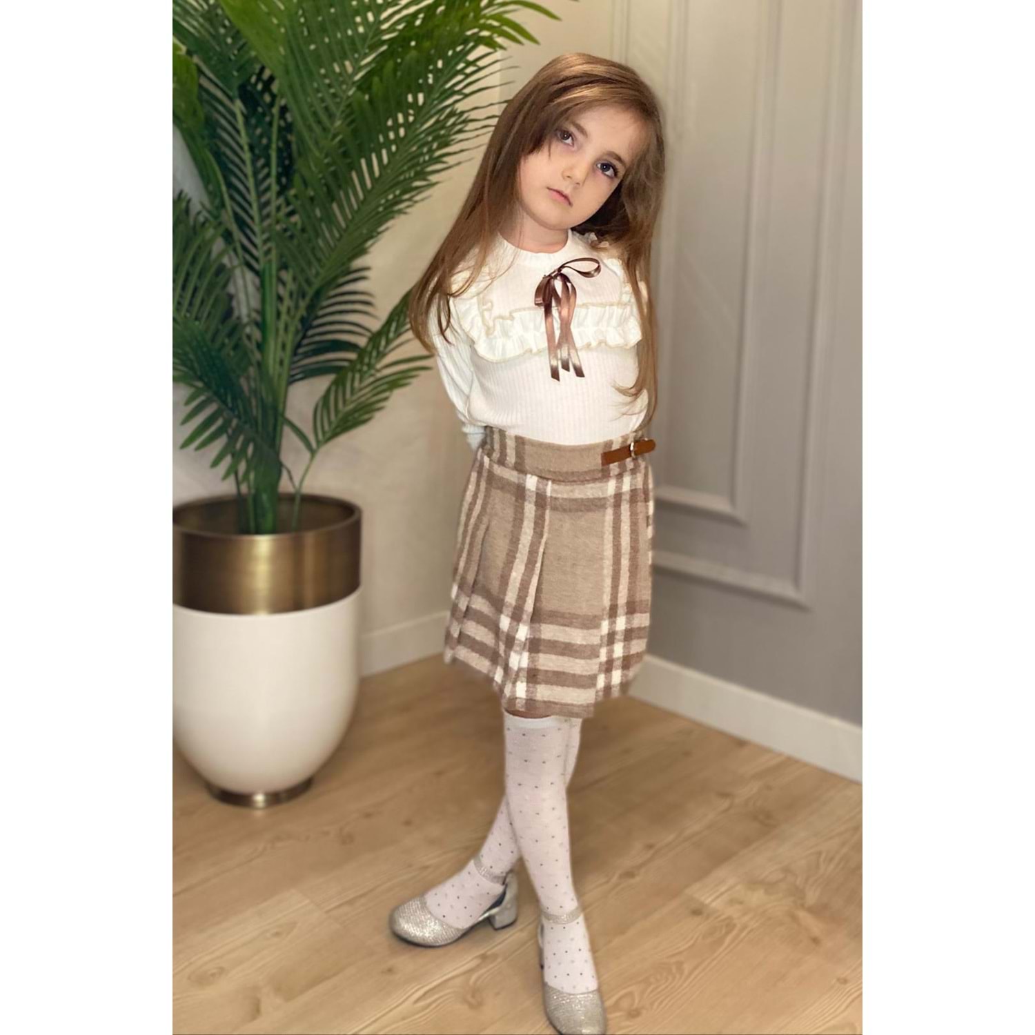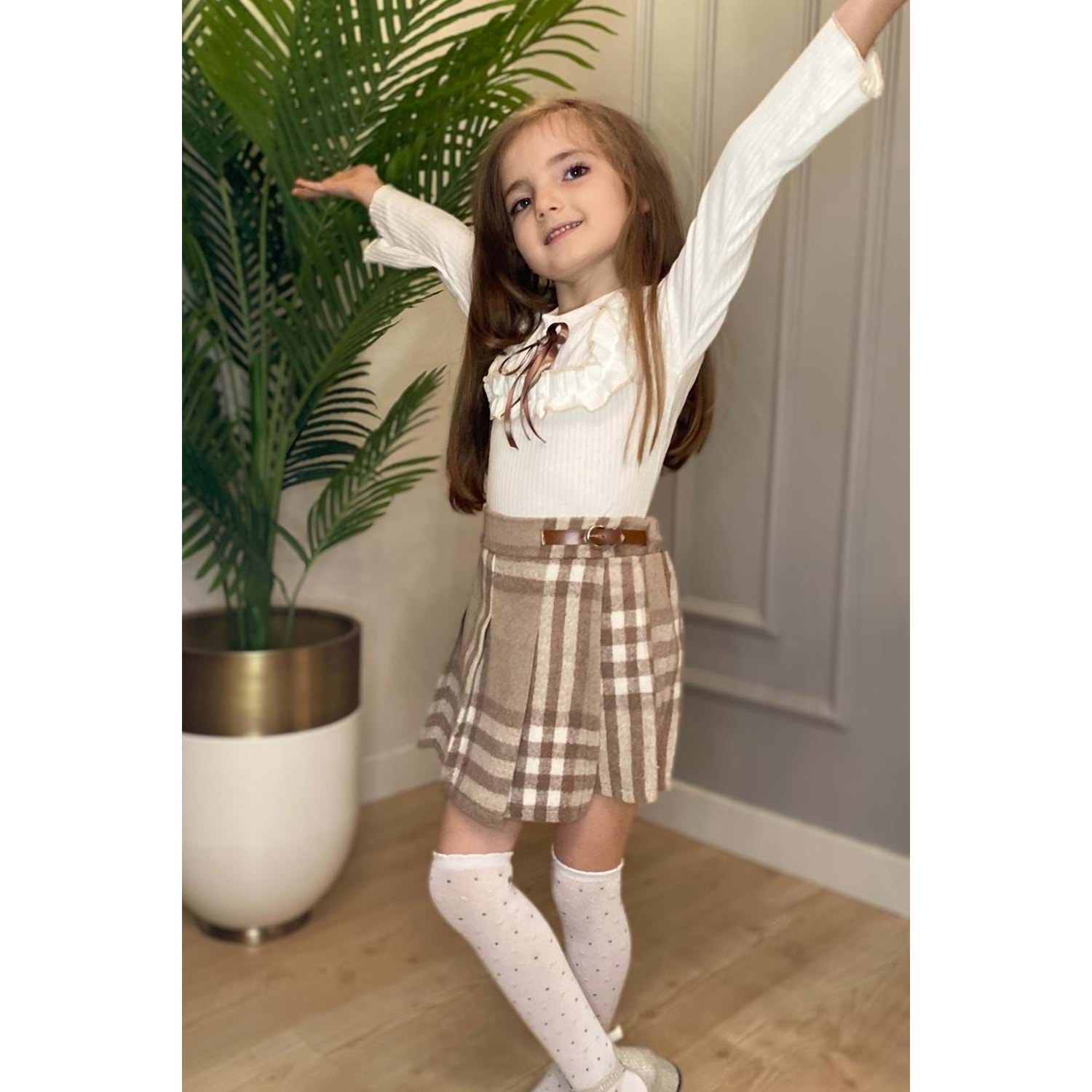 Pamuklu kumaştan imal edilmiş şort etekli iki parçadan oluşan kız çocuk takım